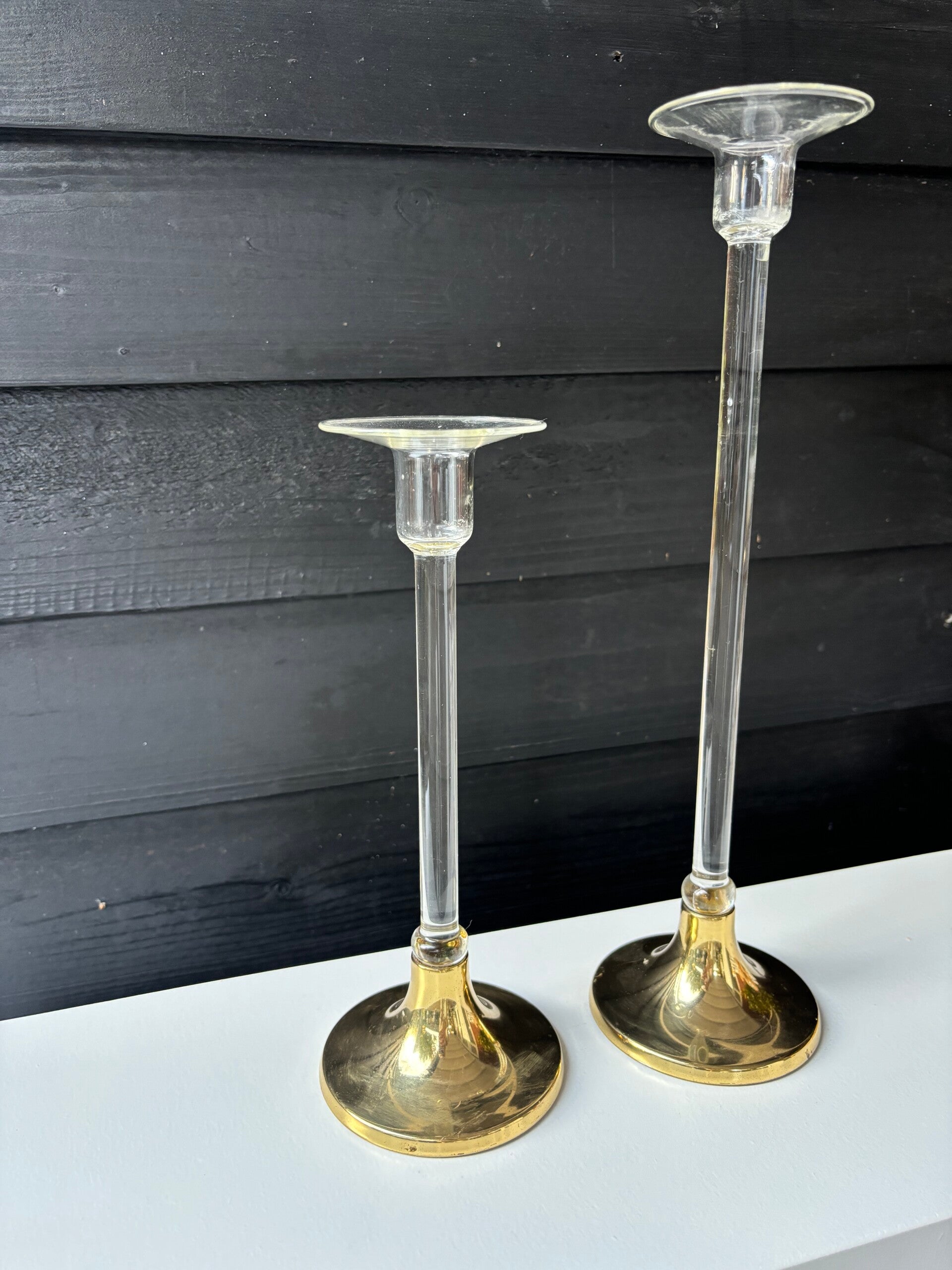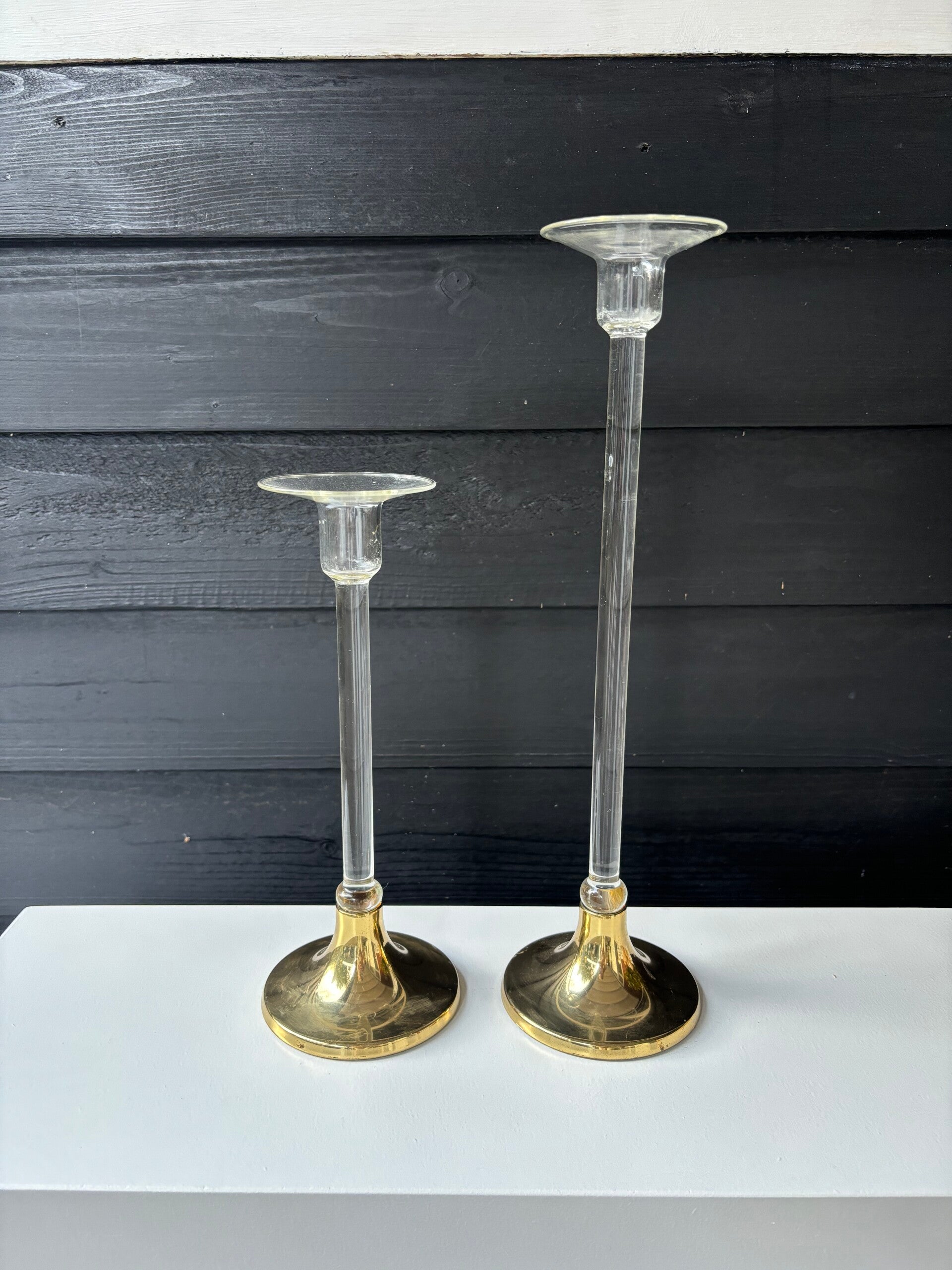 Set of glass candle holders in Hollywood Regency style. Height: 35 cm and 25 cm.