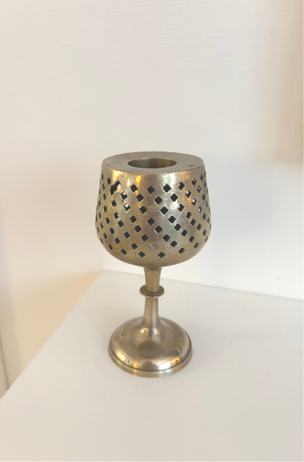 Messing kaarsenhouder. Deze kaarsenhouder is geschikt voor grote kaarsen. Hoogte: ca 15 cm. In mooie vintage staat.