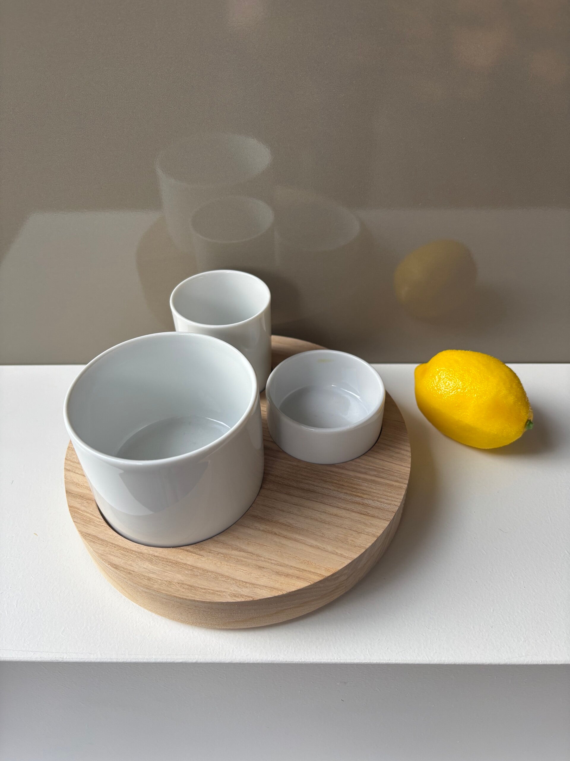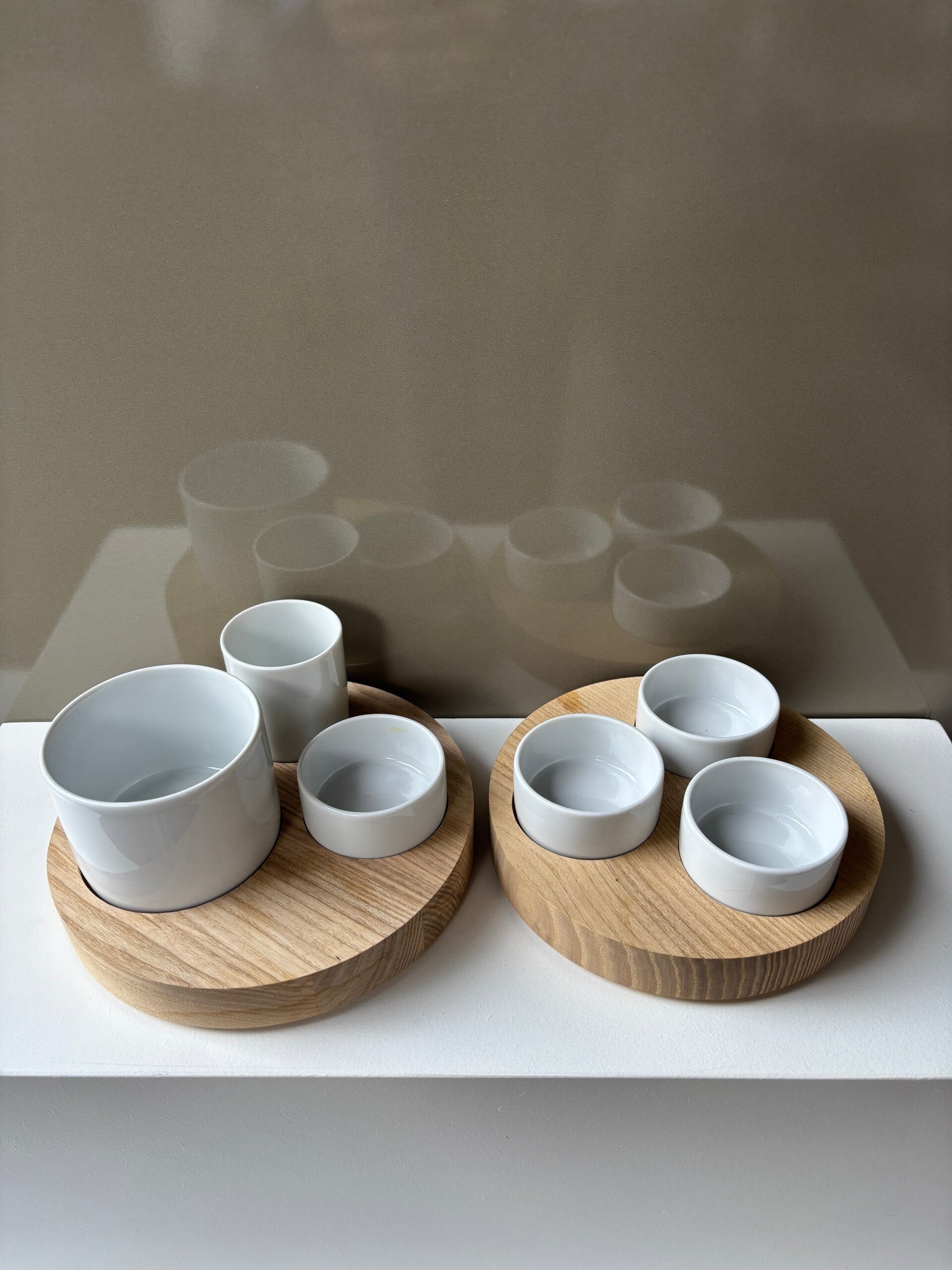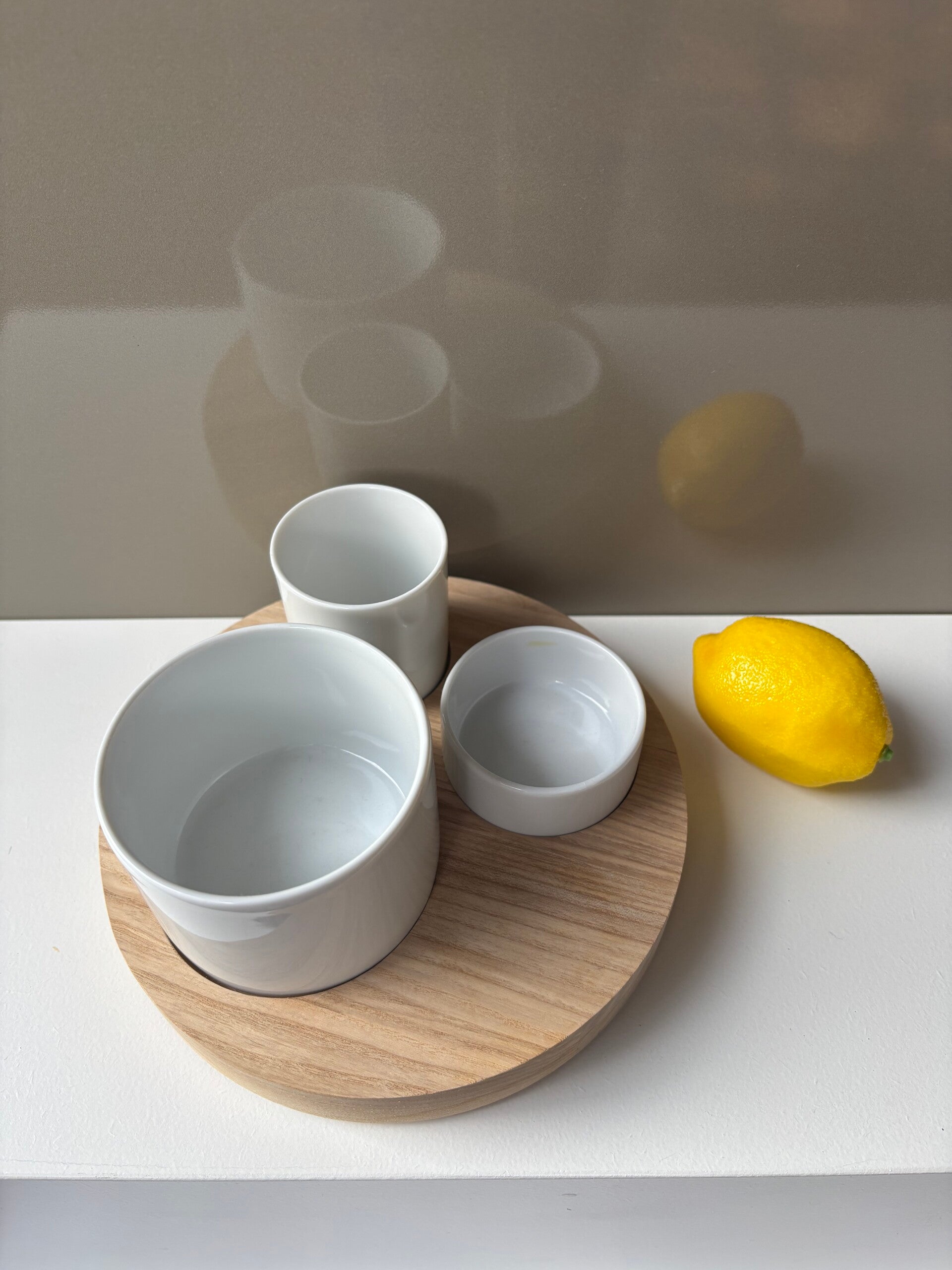 LSA tapas and olive bowls in wooden holder. A set of bowls from this series is also available on this website.