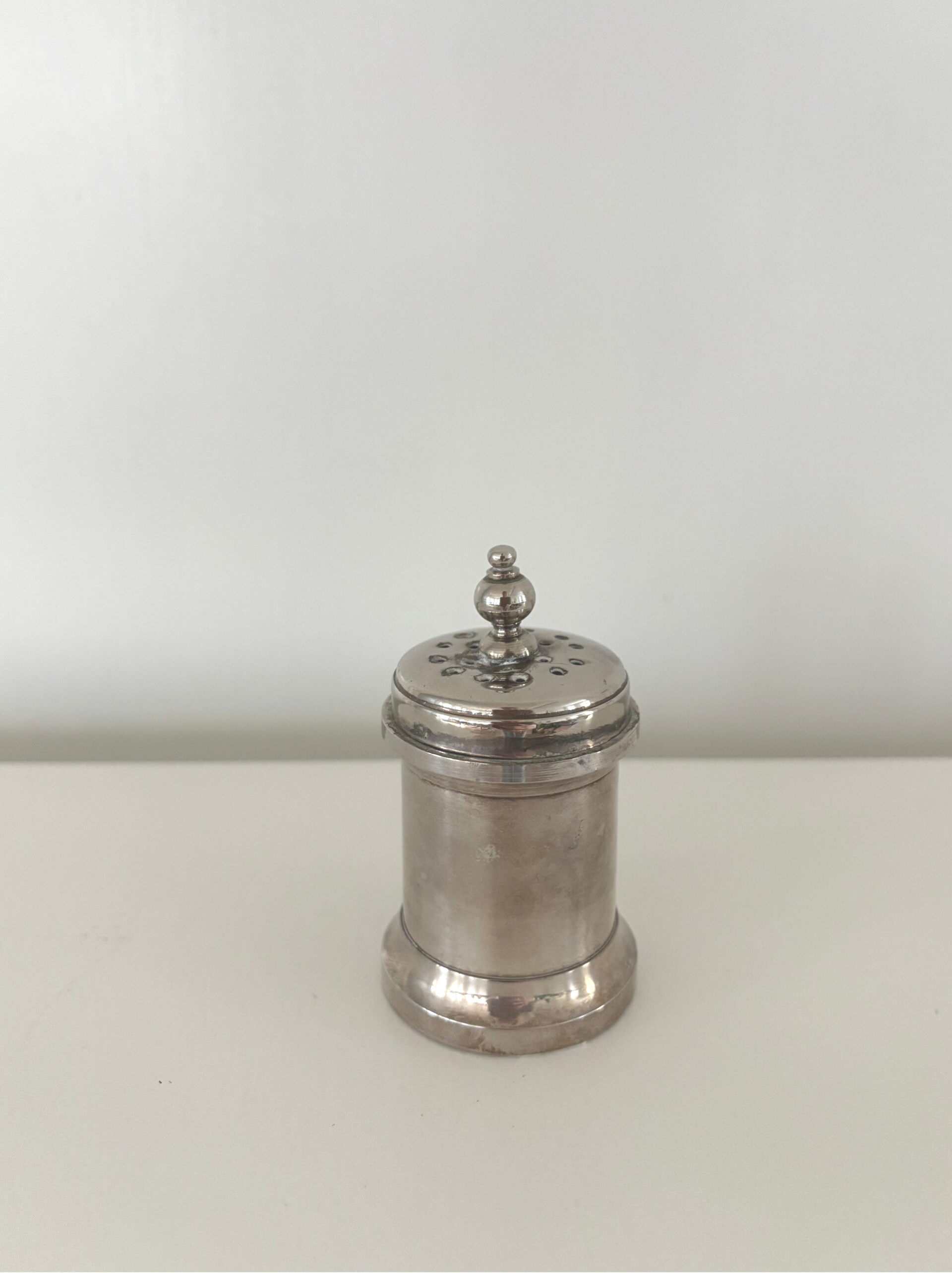 Vintage salt shaker of heavy quality. Height: 8 cm.