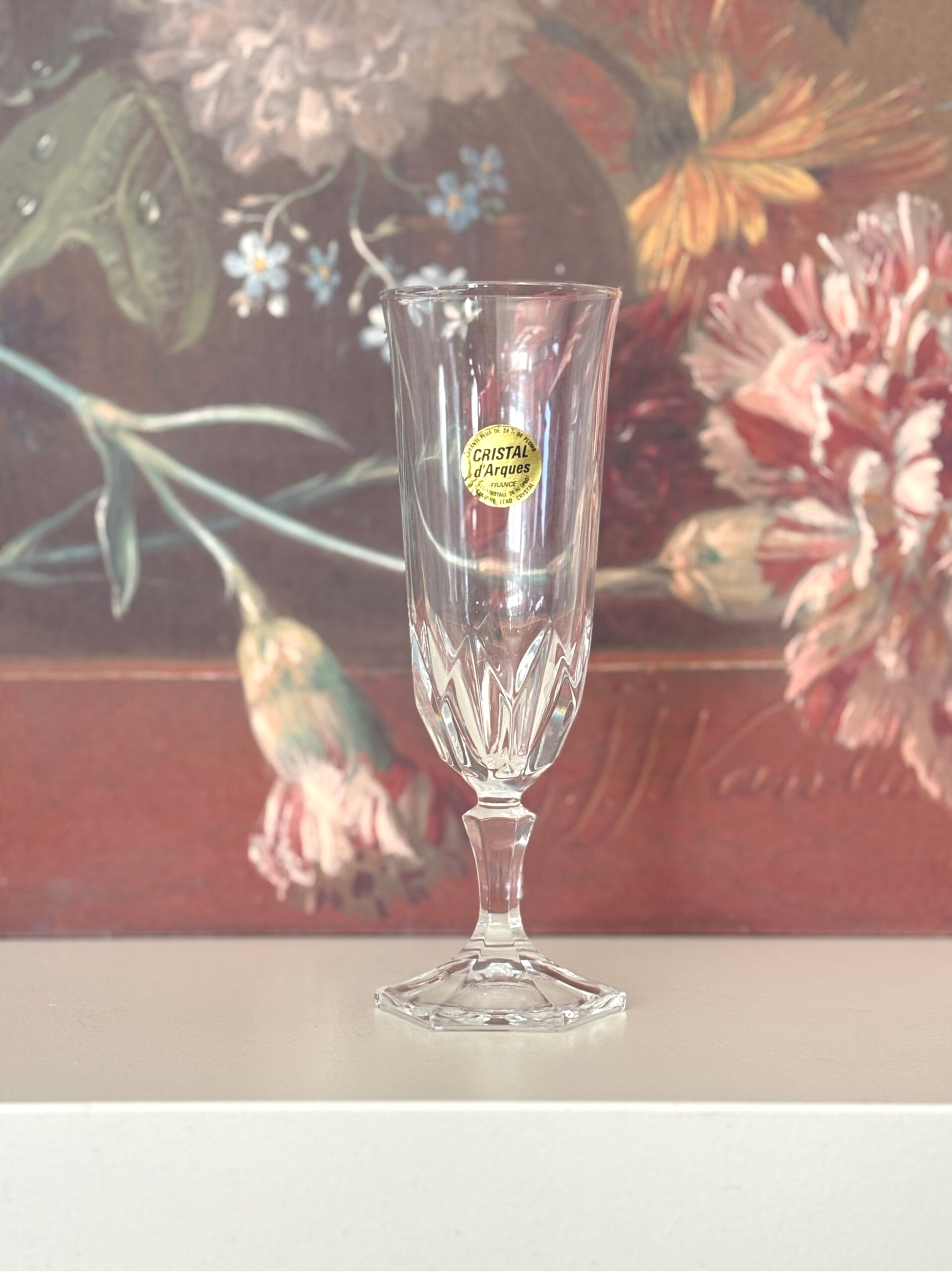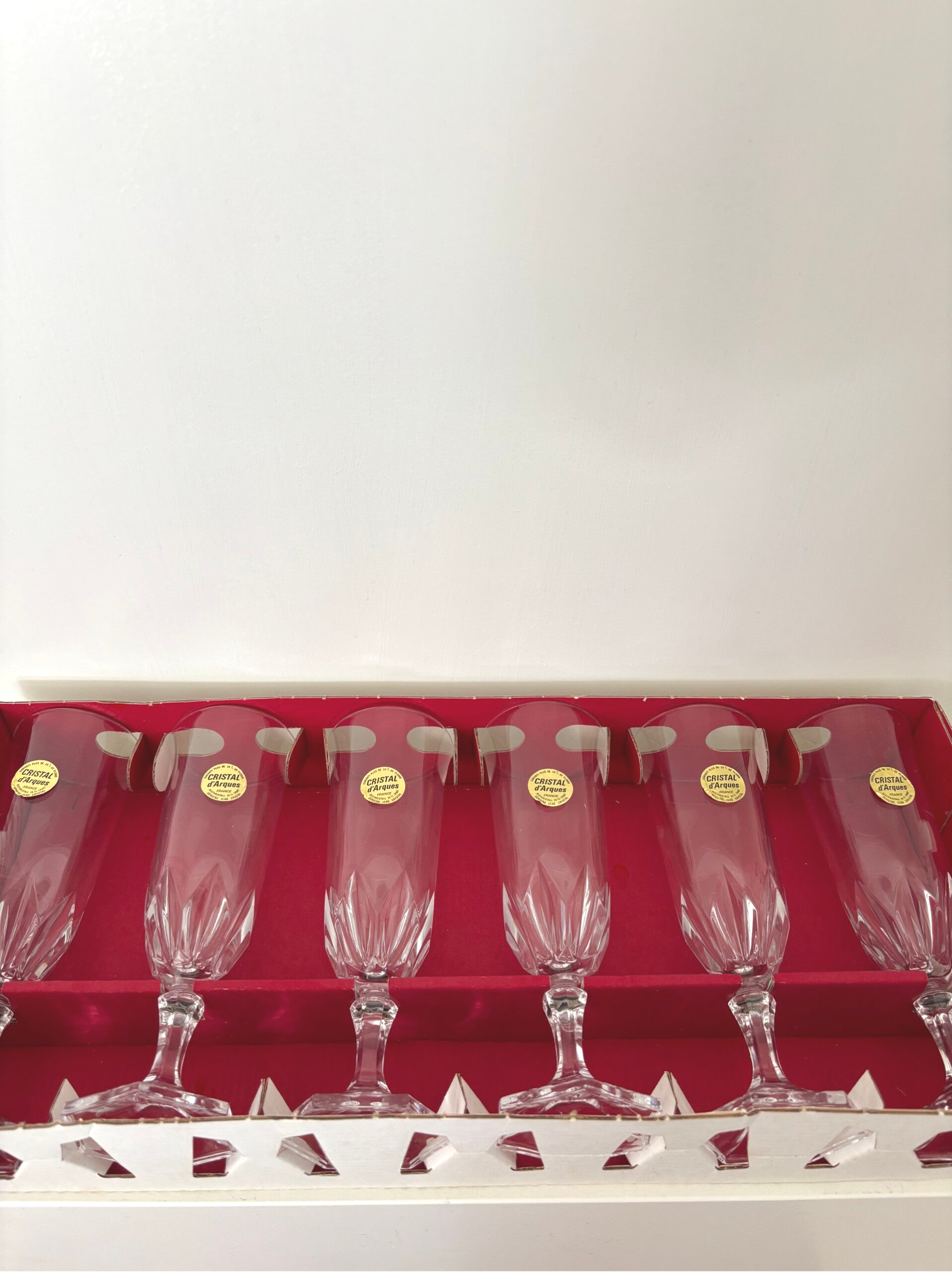 6 Kristallen Champagneglazen uit de serie 'Chaumont' Cristal D'Arques. Vervaardigd in Frankrijk. De glazen zijn in nieuwstaat.