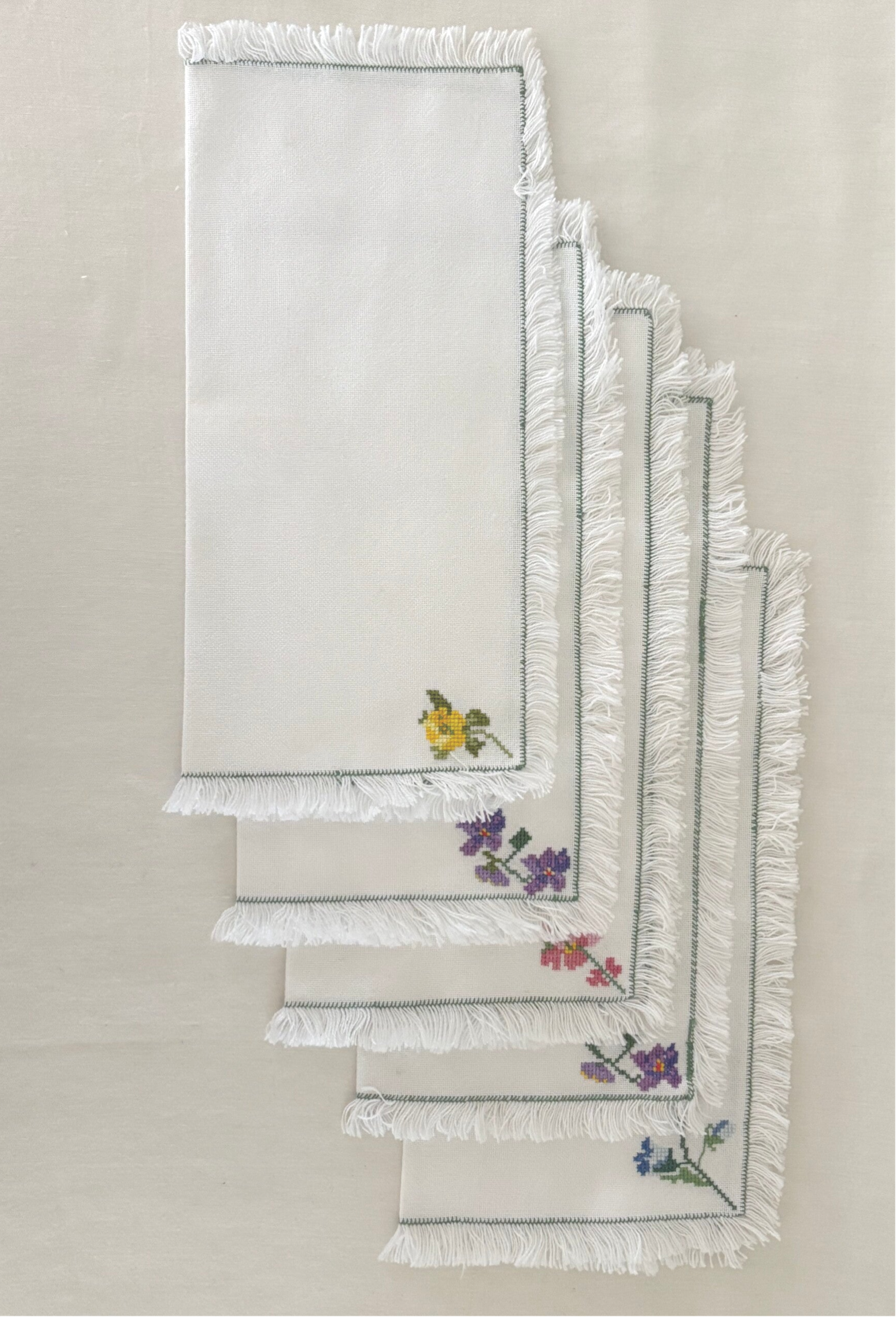 Set of 5 napkins with embroidered detail.