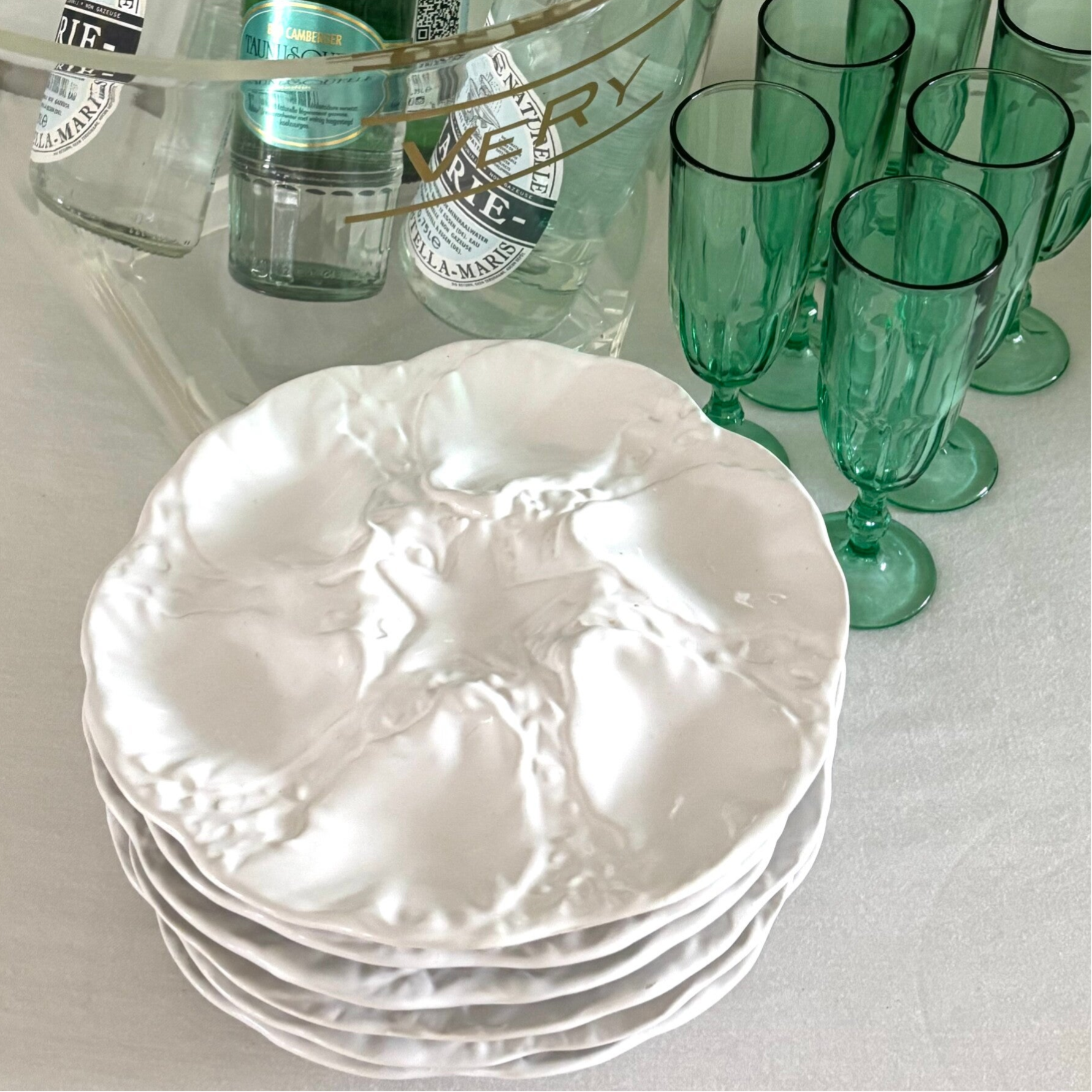 Set of 6 Portuguese oyster plates with a beautiful design. Stylish ceramic plates, perfect for an elegant seafood table.
