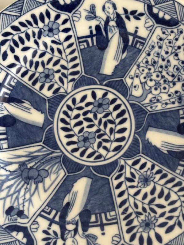 Set van 6 antieke chinoiserie porseleinen borden 'Lange Lijs' van Mosa Maastricht (1895-1935) . Diameter: 20,5 cm. Zeldzaam en sierlijk servies.