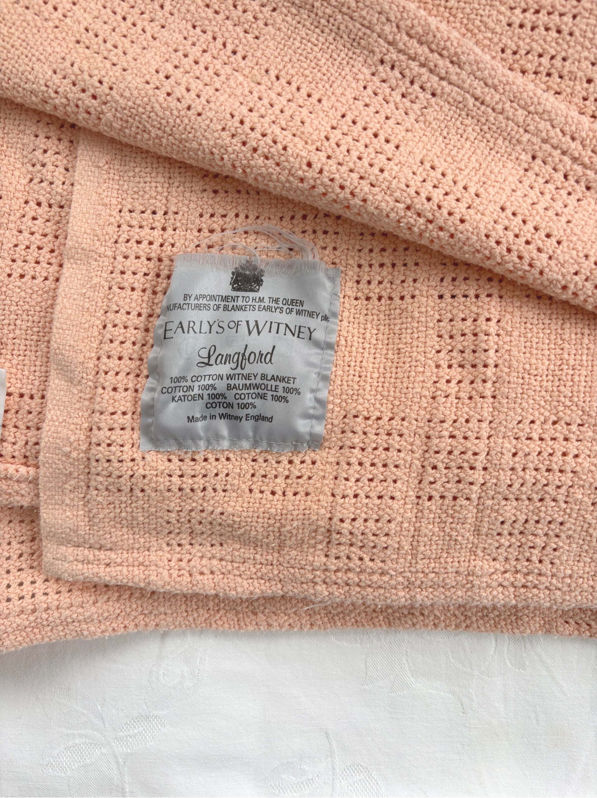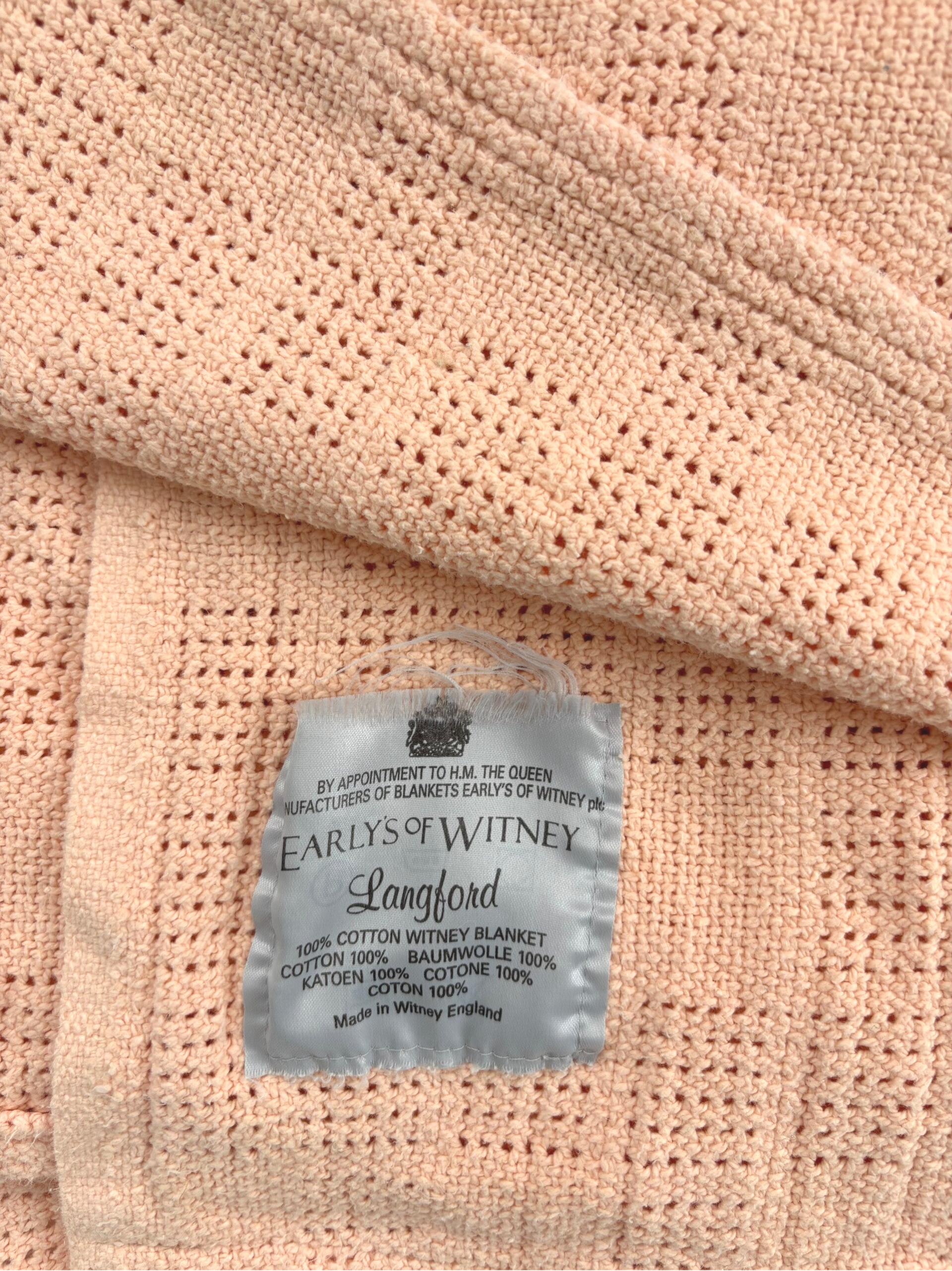 By appointment to H.M. the Queen, manufacturers of blankets – Early's of Witney. Made in England.