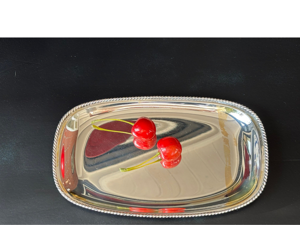 Silver-plated tray in vintage condition, featuring a charming patina. Dimensions: 22.5 x 13.5 cm.