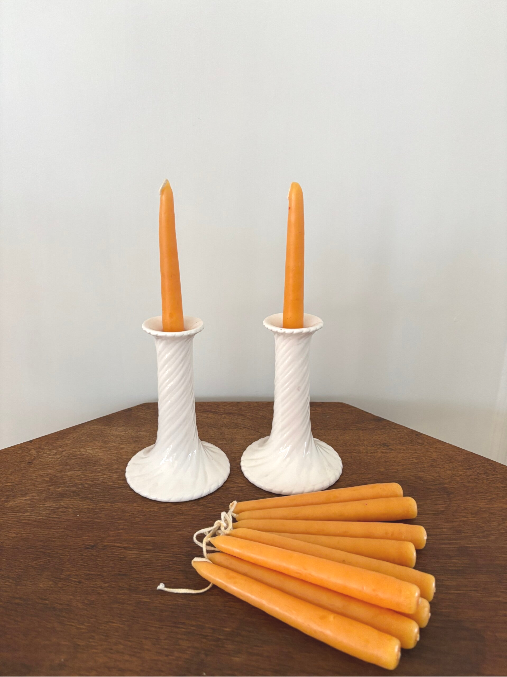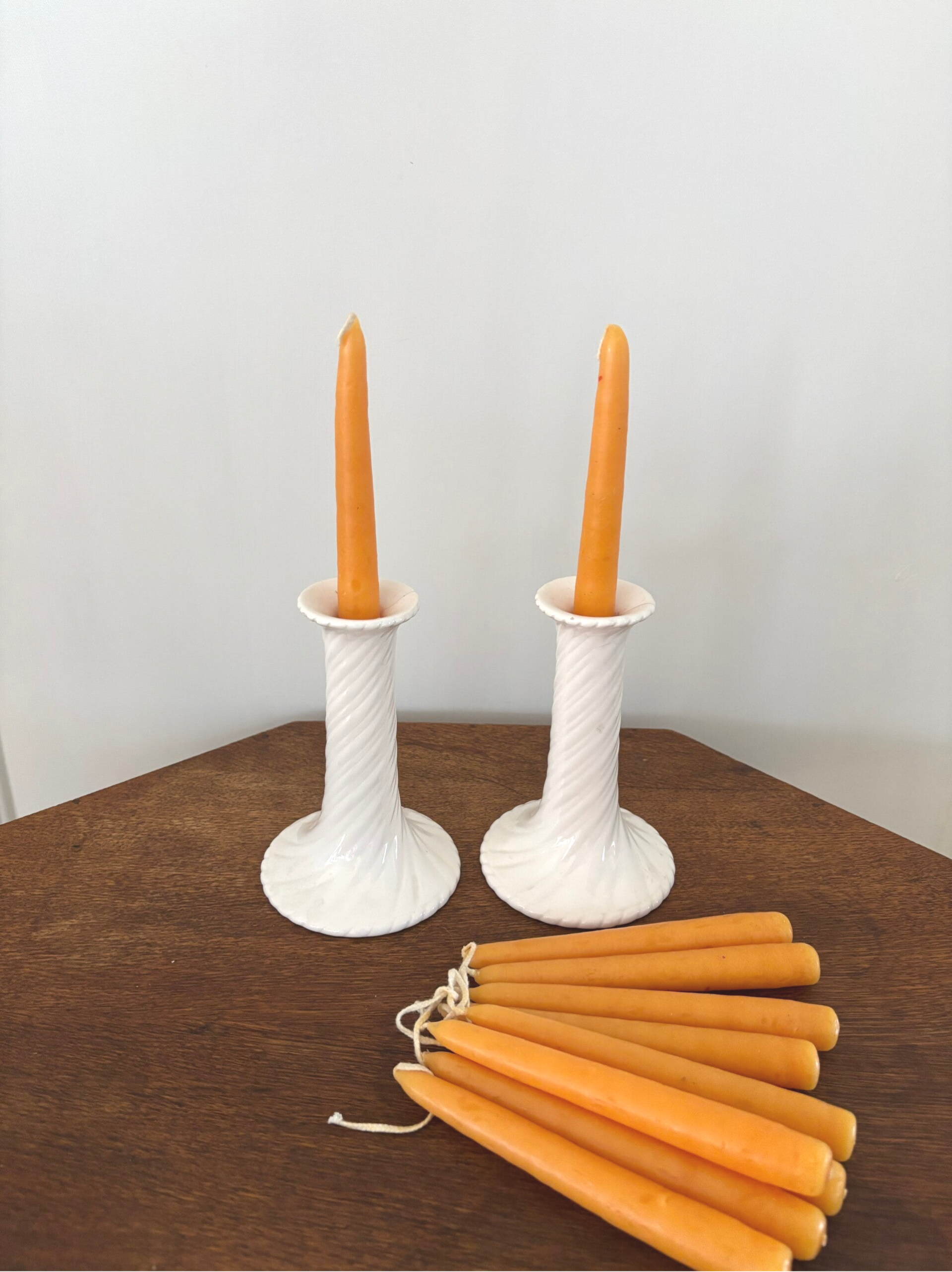 Set of 2 vintage candle holders & 11 candles. Height of the candle holders: 14.5 cm.