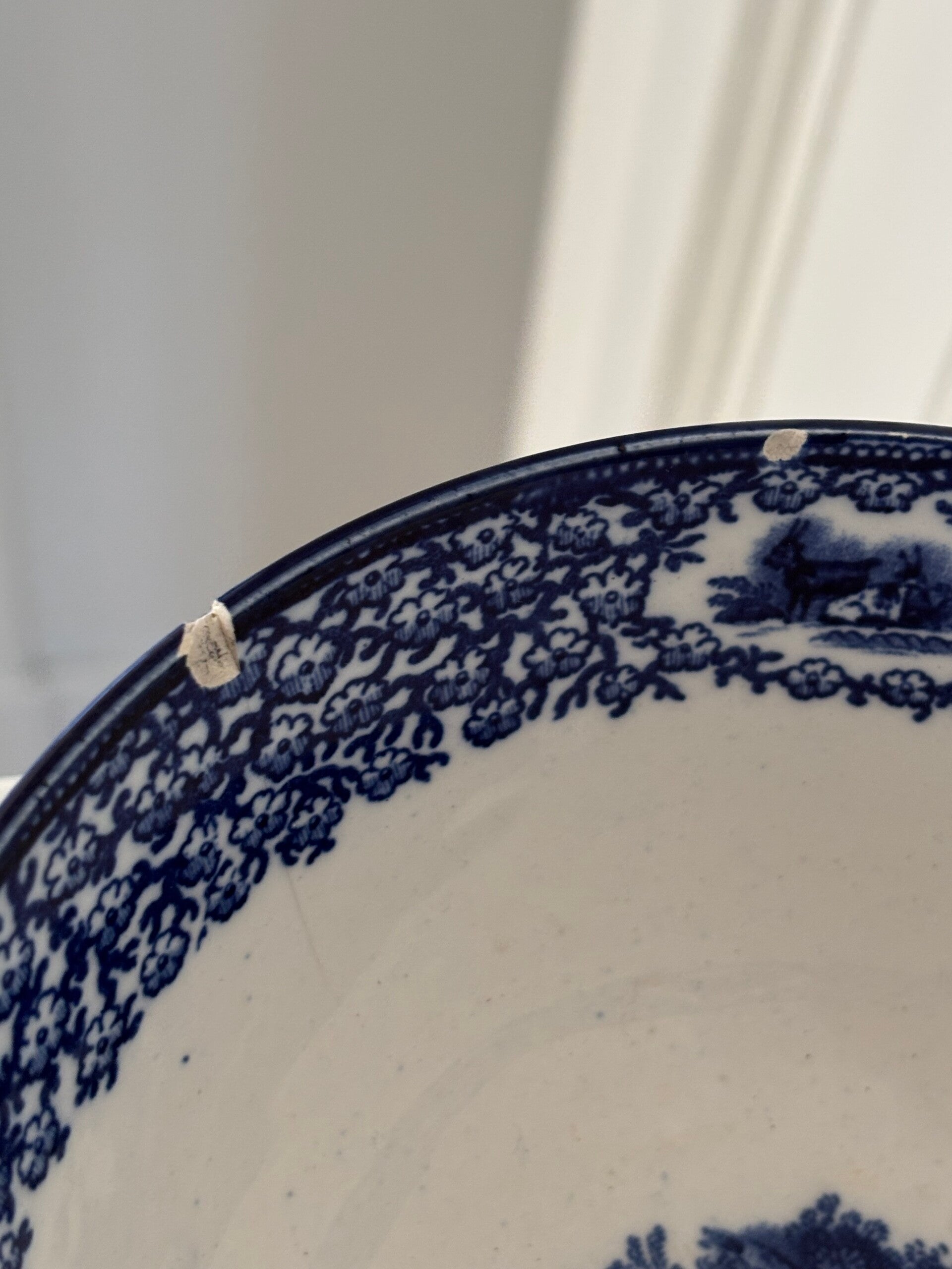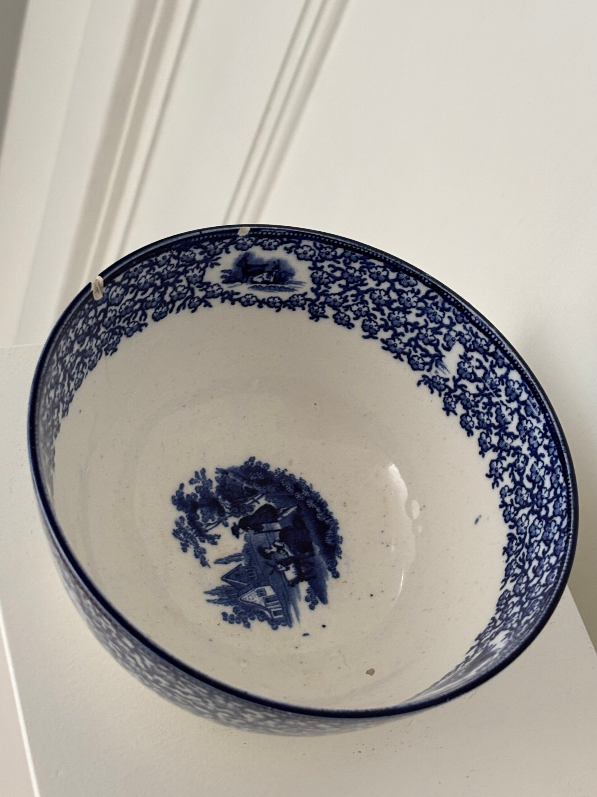 Prachtige set van 2 grote antieke kommen met een klassieke uitstraling en subtiele details. Beide kommen zijn aan de onderzijde gemerkt met Rural M & C Co. Diameter: 16,5 cm. In vintage staat, zie foto's. Sfeervol servies voor liefhebbers van antiek of als decoratief accent in een landelijk interieur.
