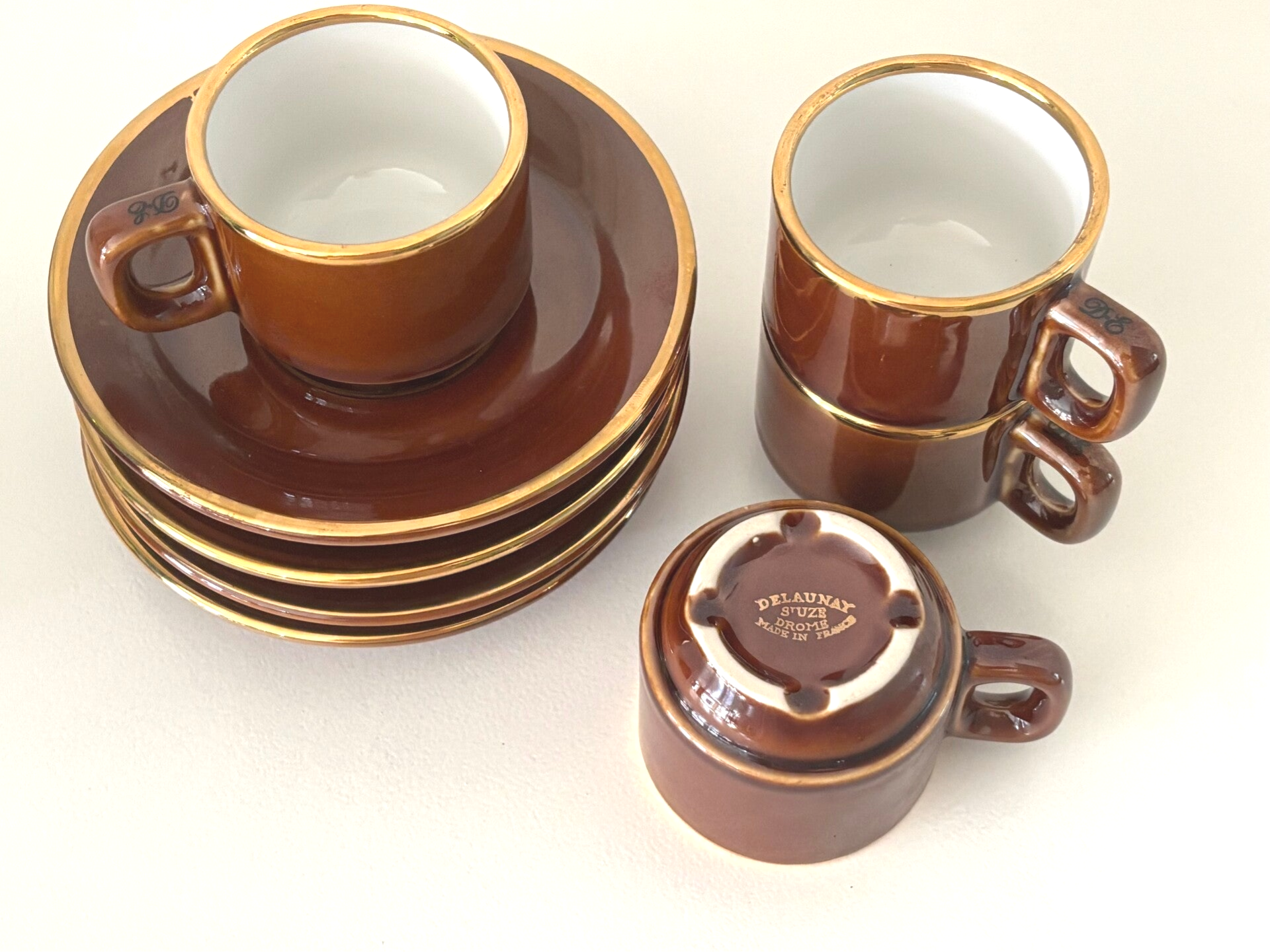 Set of 4 espresso cups & saucers from Delaunay France bistroware. Stylish and timeless French tableware. Saucer diameter: 13 cm, cup: 6 cm.