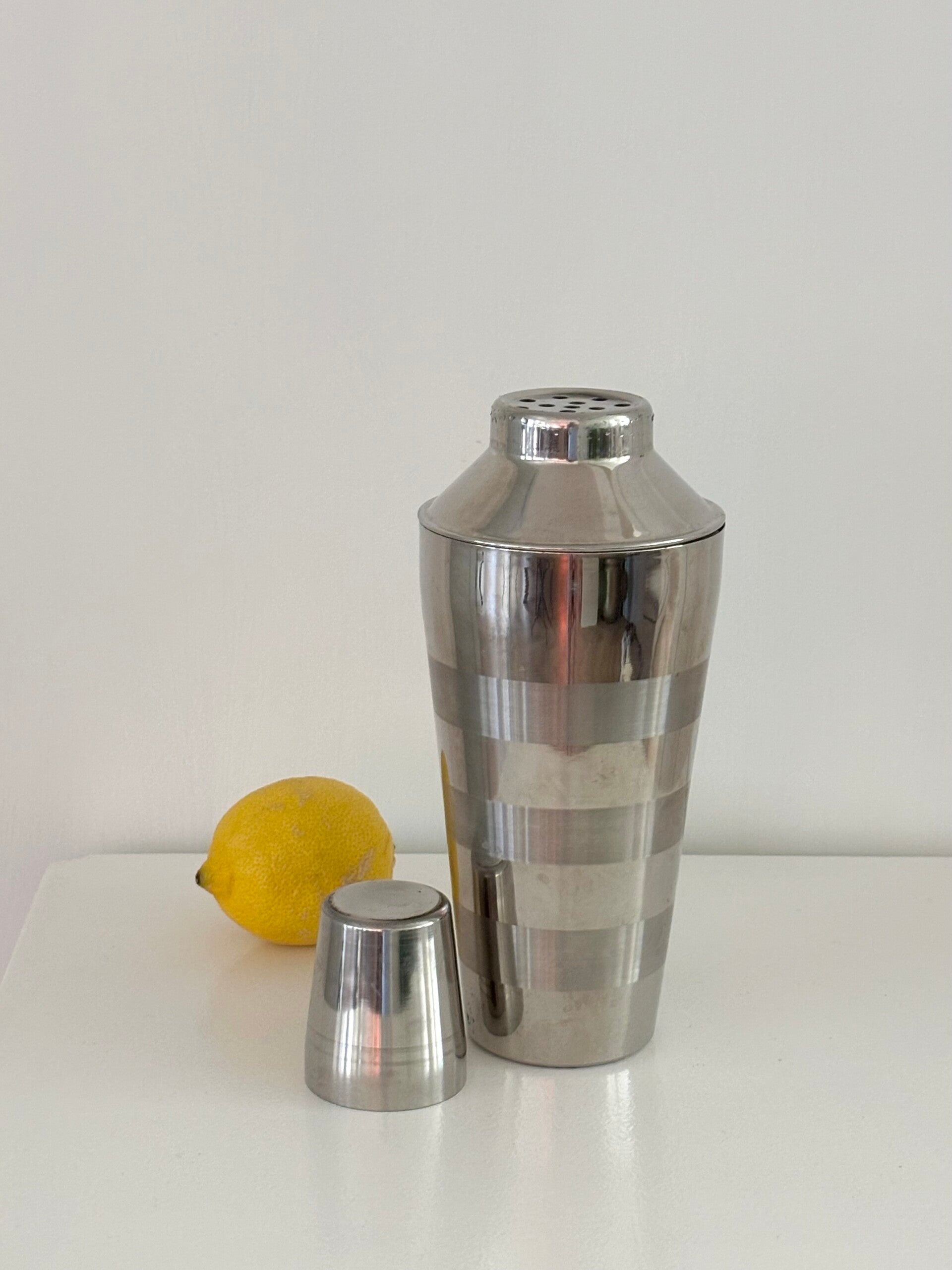 Sleek vintage cocktail shaker with timeless appeal. Ideal for any home bar or festive gathering. Height: 25 cm.