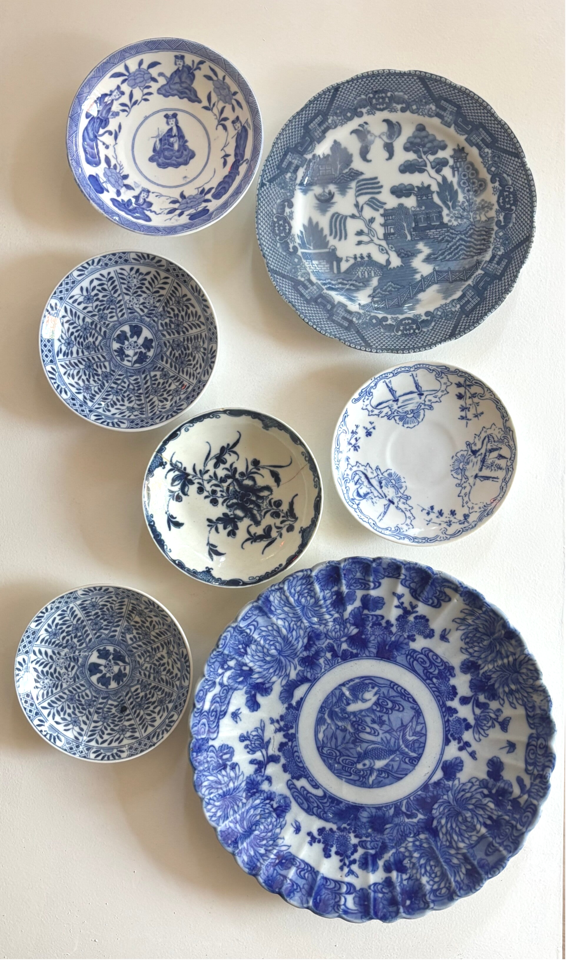 Set vintage borden in mooie vintage staat. Perfect voor desserts, voorgerechten of als decoratief accent aan de muur.