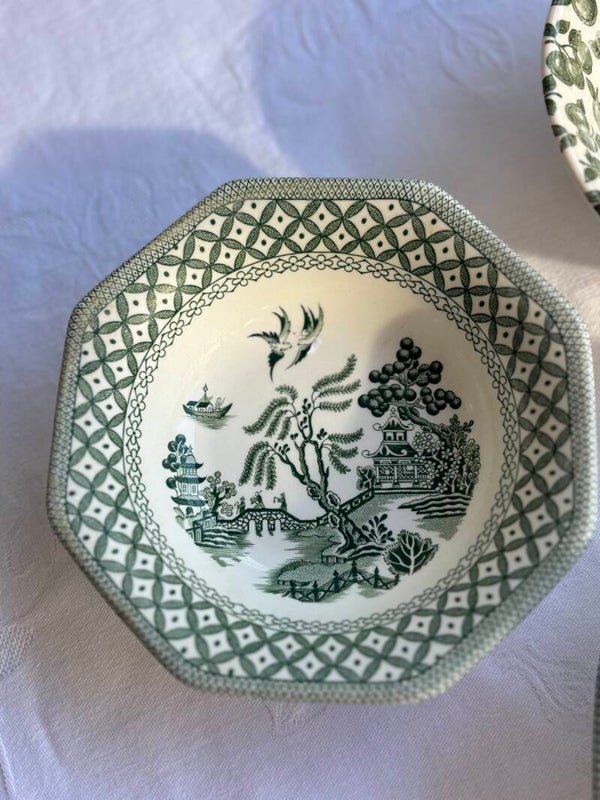 Set van 3 groene schaaltjes van Royal Staffordshire Liberty Ironstone, J&G Meakin England. Diameter: 16,5 cm, 16 cm en 14 cm. Mooi te combineren of decoratief op tafel.