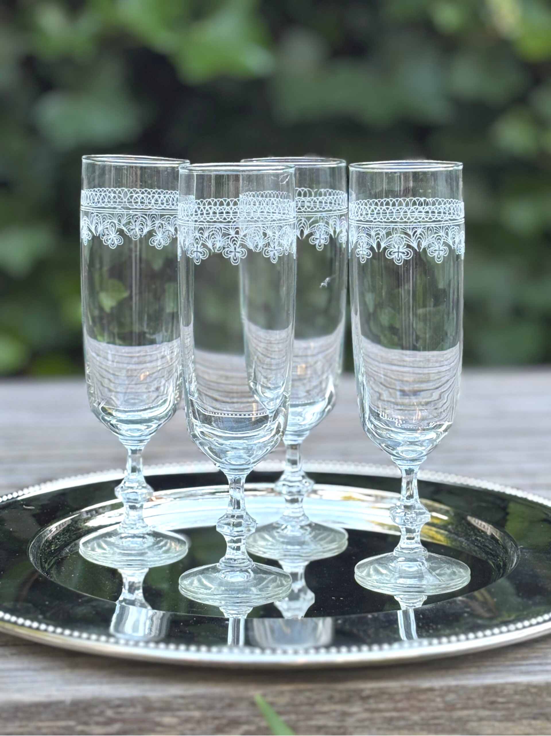 4 Champagneglazen met prachtig geslepen decor - 4 Champagne glasses with beautifully cut detailing