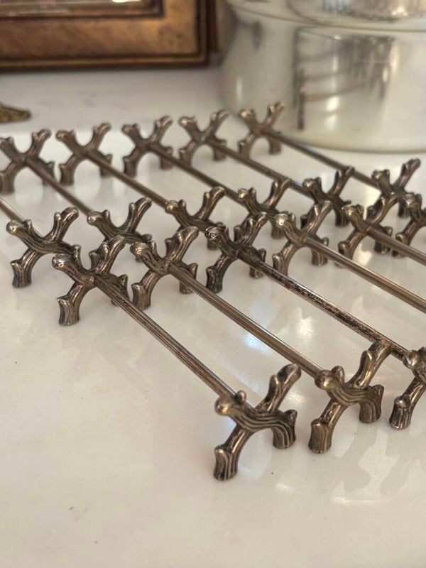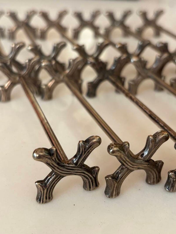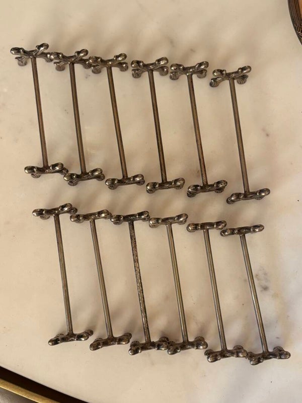 Set van 12 verzilverde vintage messenleggers. Een elegante toevoeging aan een gedekte tafel, perfect voor diners met stijl.