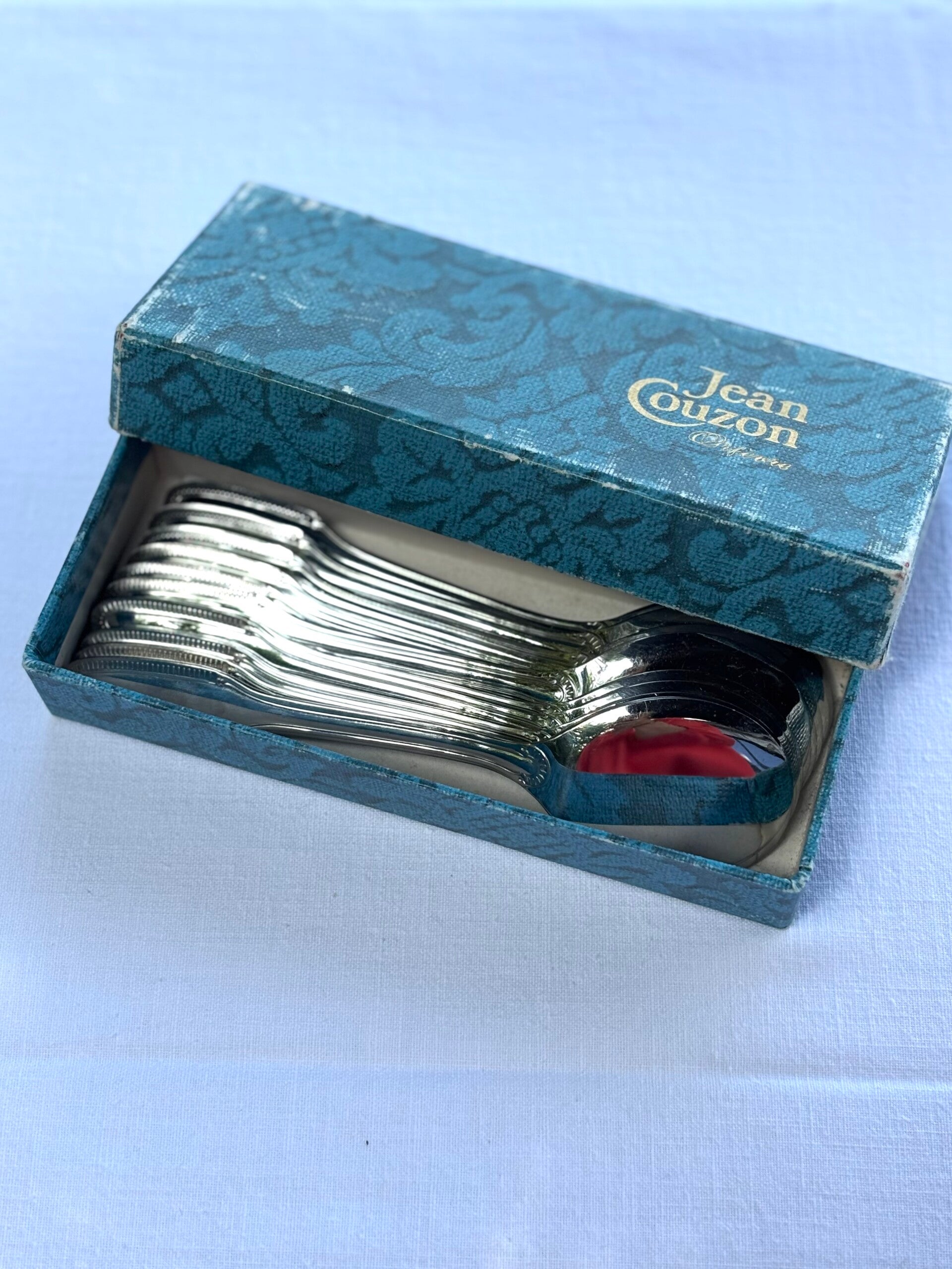 Set of 12 silver-plated ice cream spoons by Jean Couzon, presented in the original box. Each spoon is marked on the front and in lovely condition.