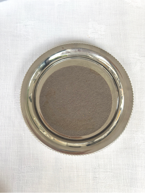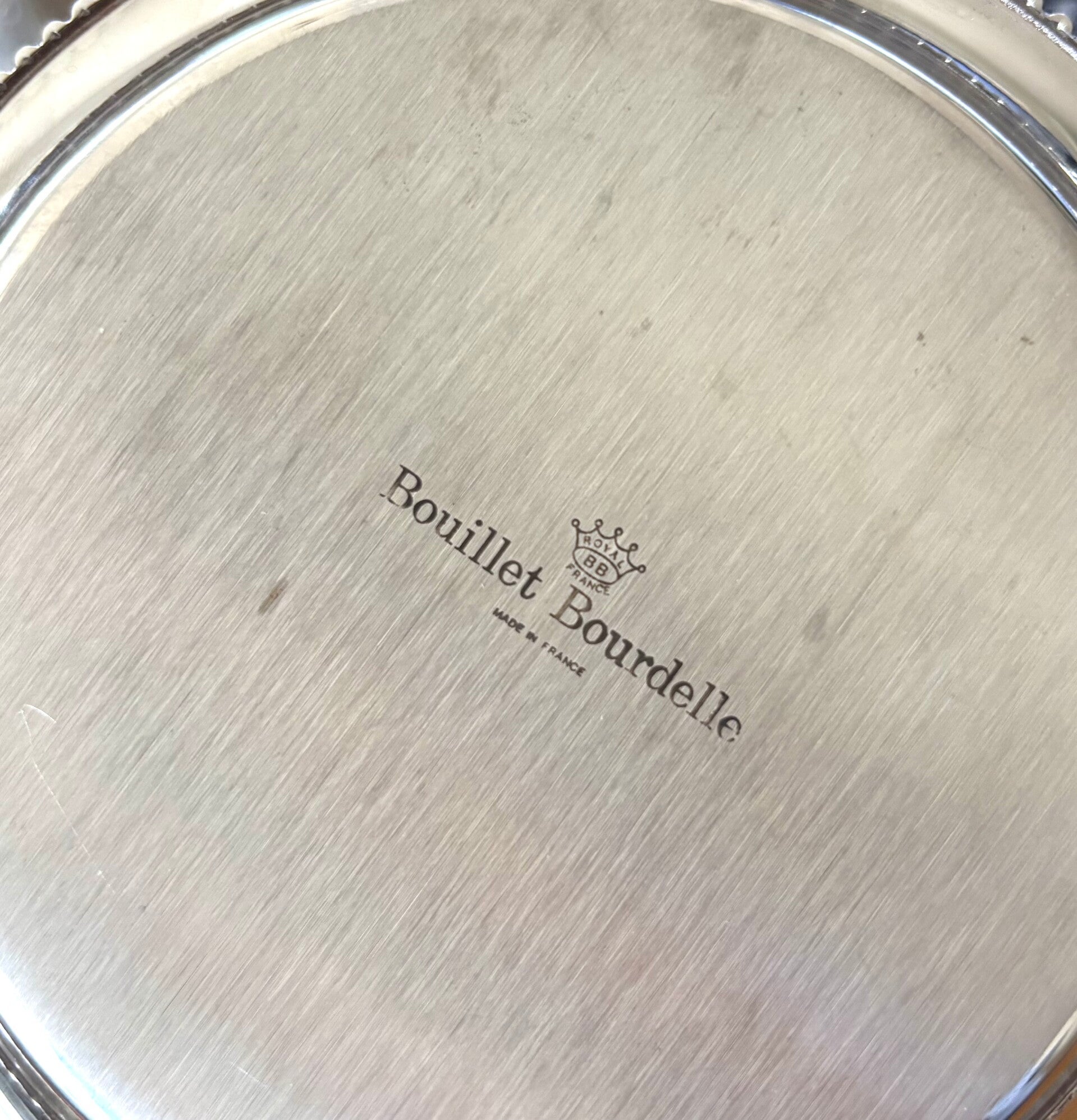 Champagne bottle coaster with beaded rim by Maison Bouillet Bourdelle France. Diameter: 13 cm. A refined and stylish table accent.