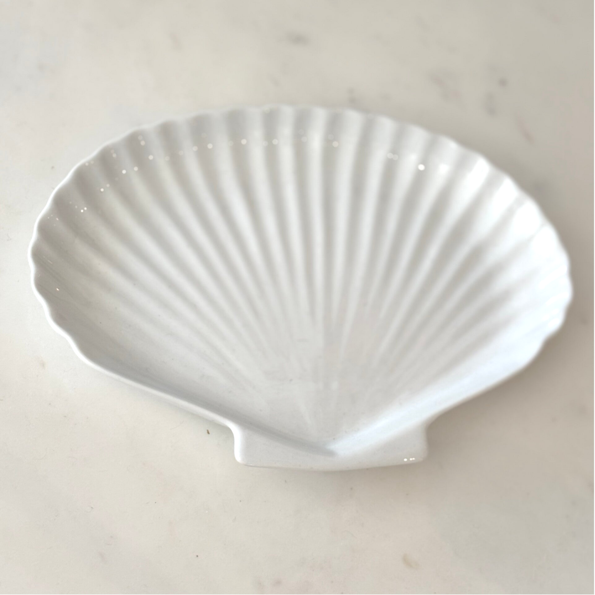 Ceramic shell-shaped dish. Ideal for small bites or lemon wedges to accompany seafood.