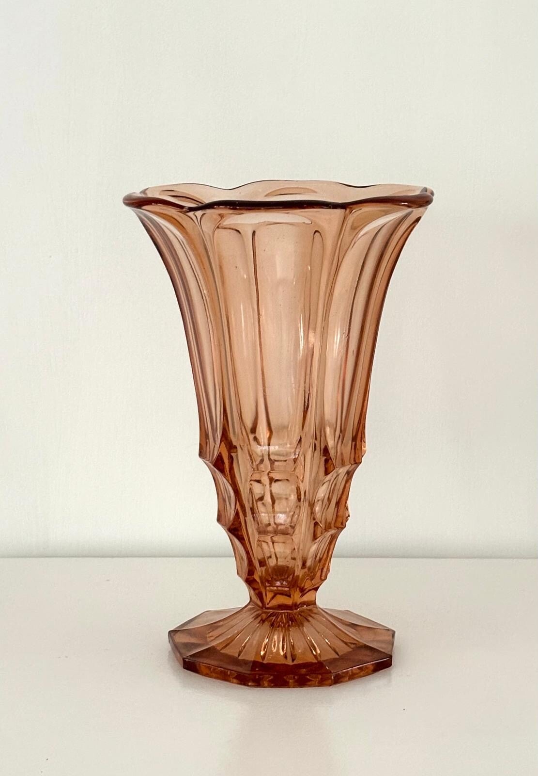 Bijzonder vormgegeven hoge vaas van Val Saint Lambert, Art deco uit ca. 1930. De vaas is 25,5 cm. hoog.