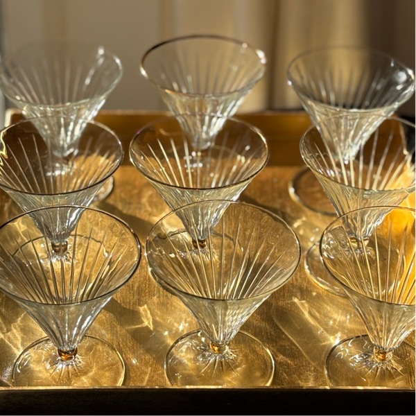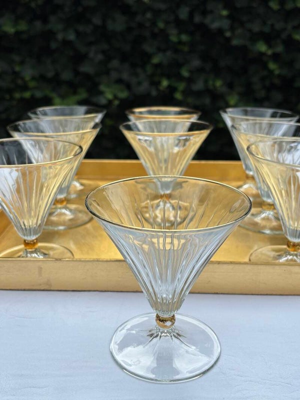 Set van 9 champagne- of cocktailglazen. Hoogte: 11 cm, diameter: 10,5 cm. Elegant voor elke gelegenheid. In mooie vintage staat.
