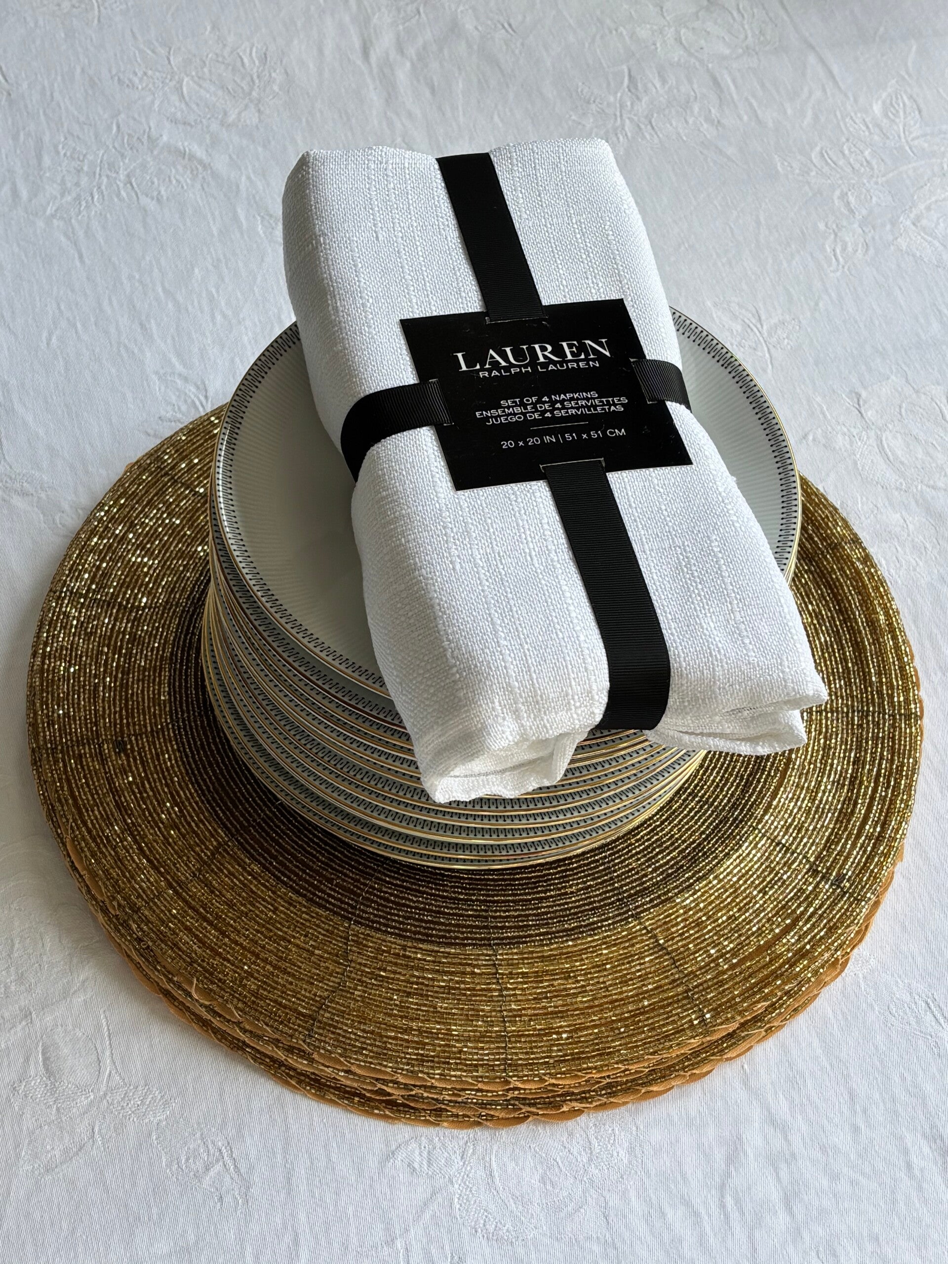 Set of 8 napkins by Lauren – Ralph Lauren. Stylish and classic, perfect for an elegantly set table. Size: 51 x 51 cm.