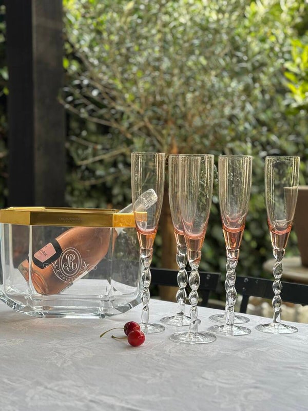 6 Feestelijke Champagneglazen gedraaide voet - 6 Festive Champagne glasses twisted stem