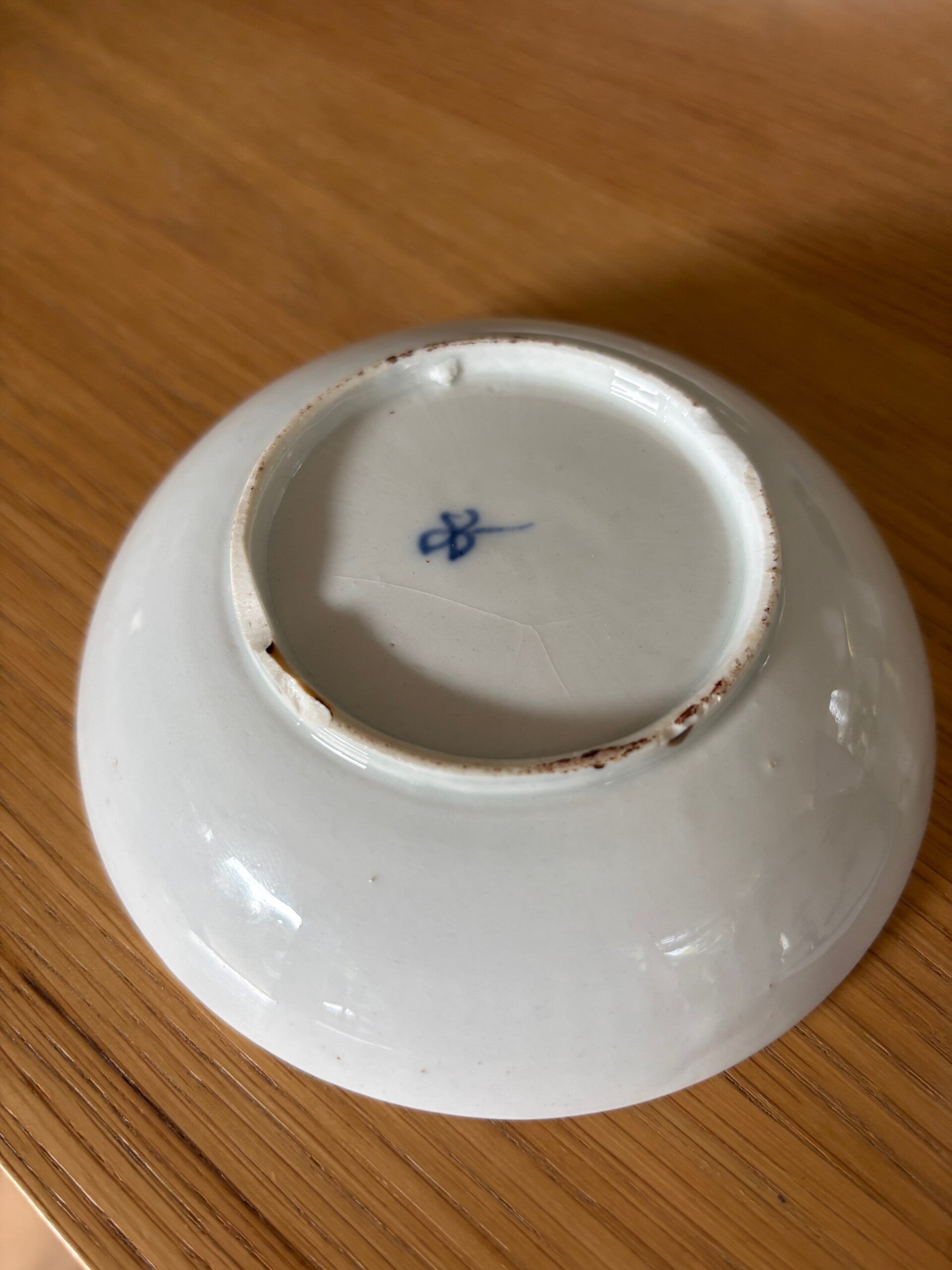 Kop en schotel van Limbach porselein uit de 18e eeuw. Fijne set met kleine beschadigingen aan de onderzijde van het schoteltje (zie foto). Schotel Ø 11,9 cm, kom Ø 6,8 cm.
