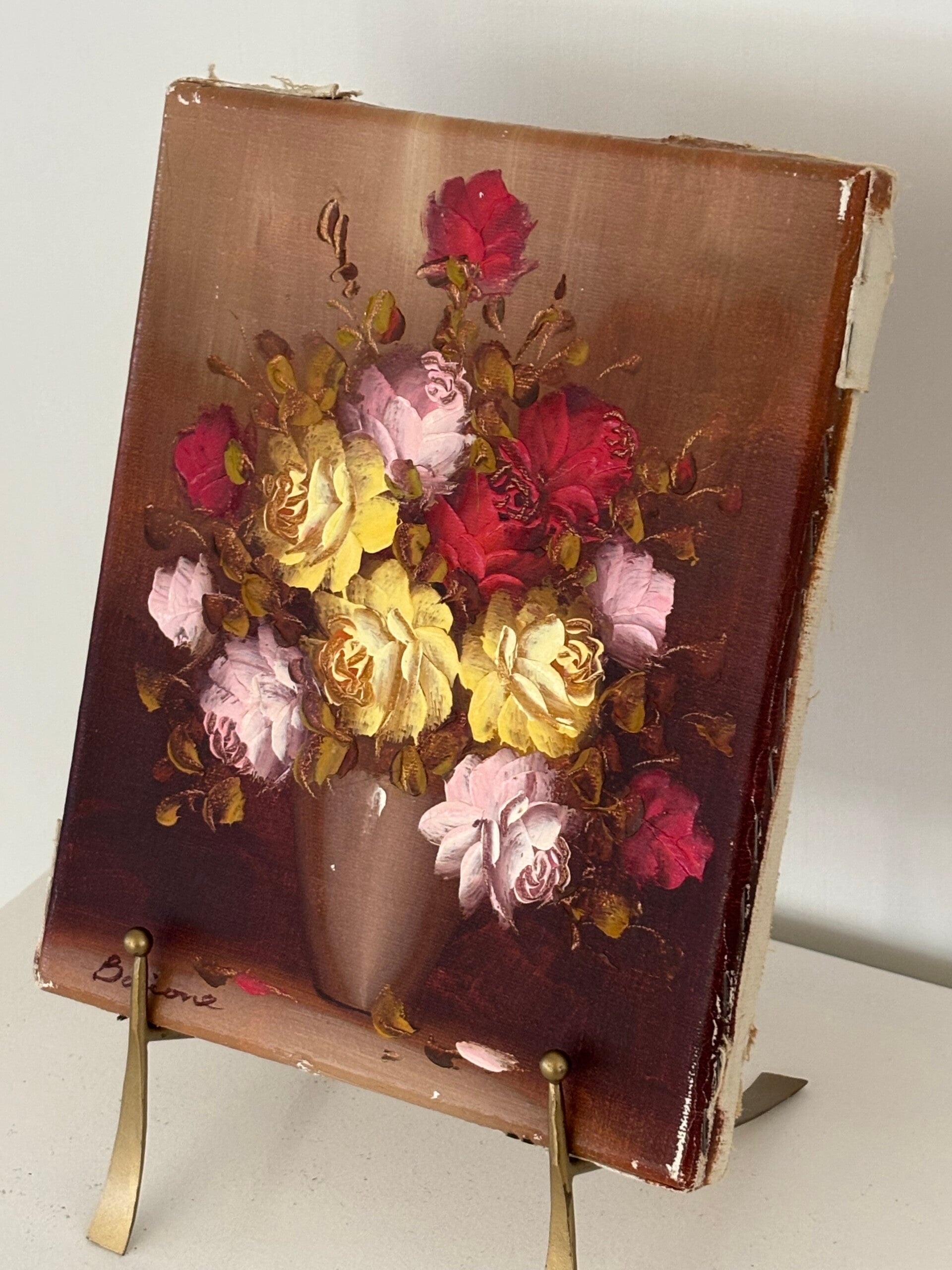 Small vintage painting (25.5 x 20.5 cm), signed ‘Borione’. French origin. A charming, atmospheric piece full of character.
