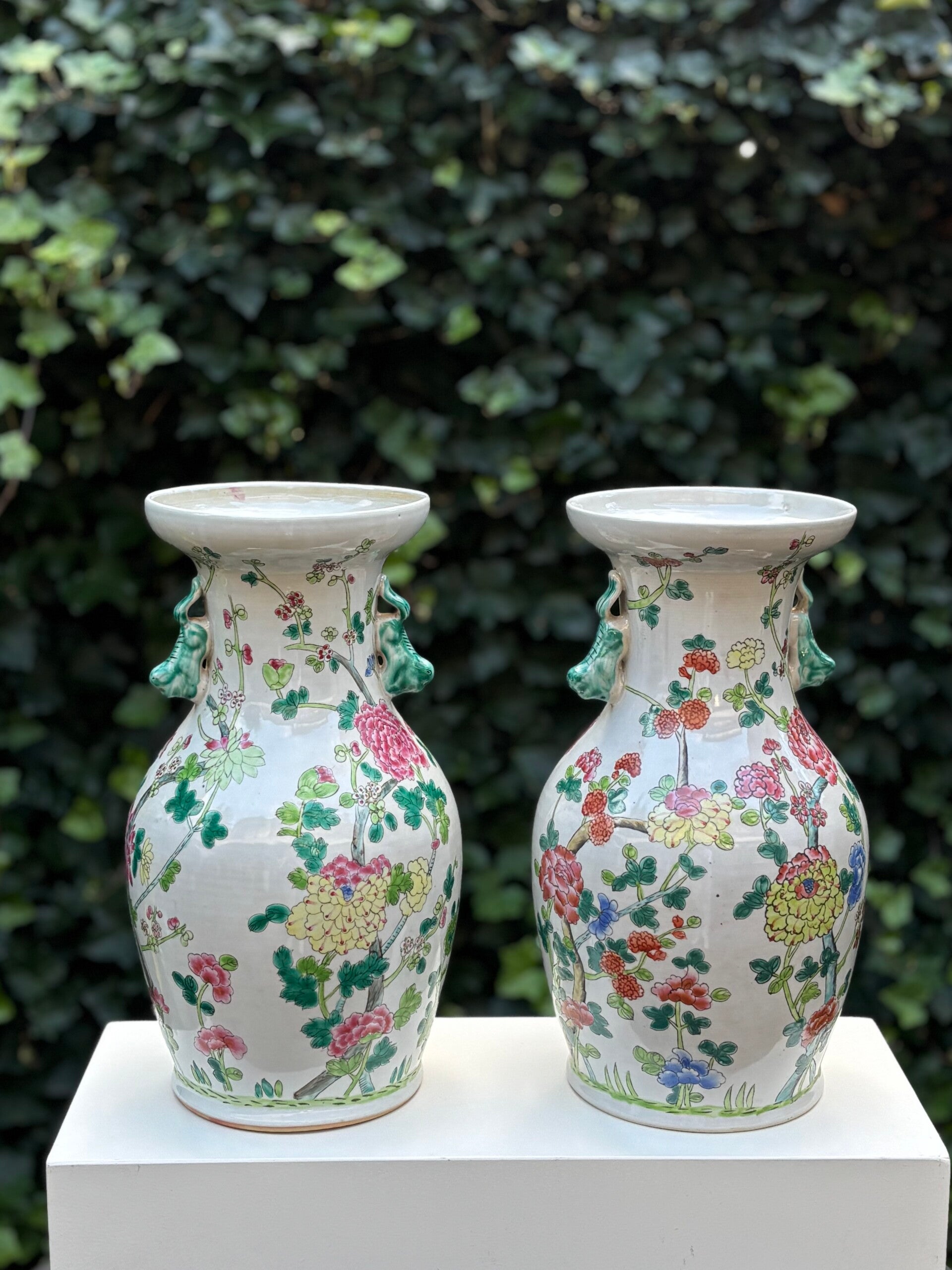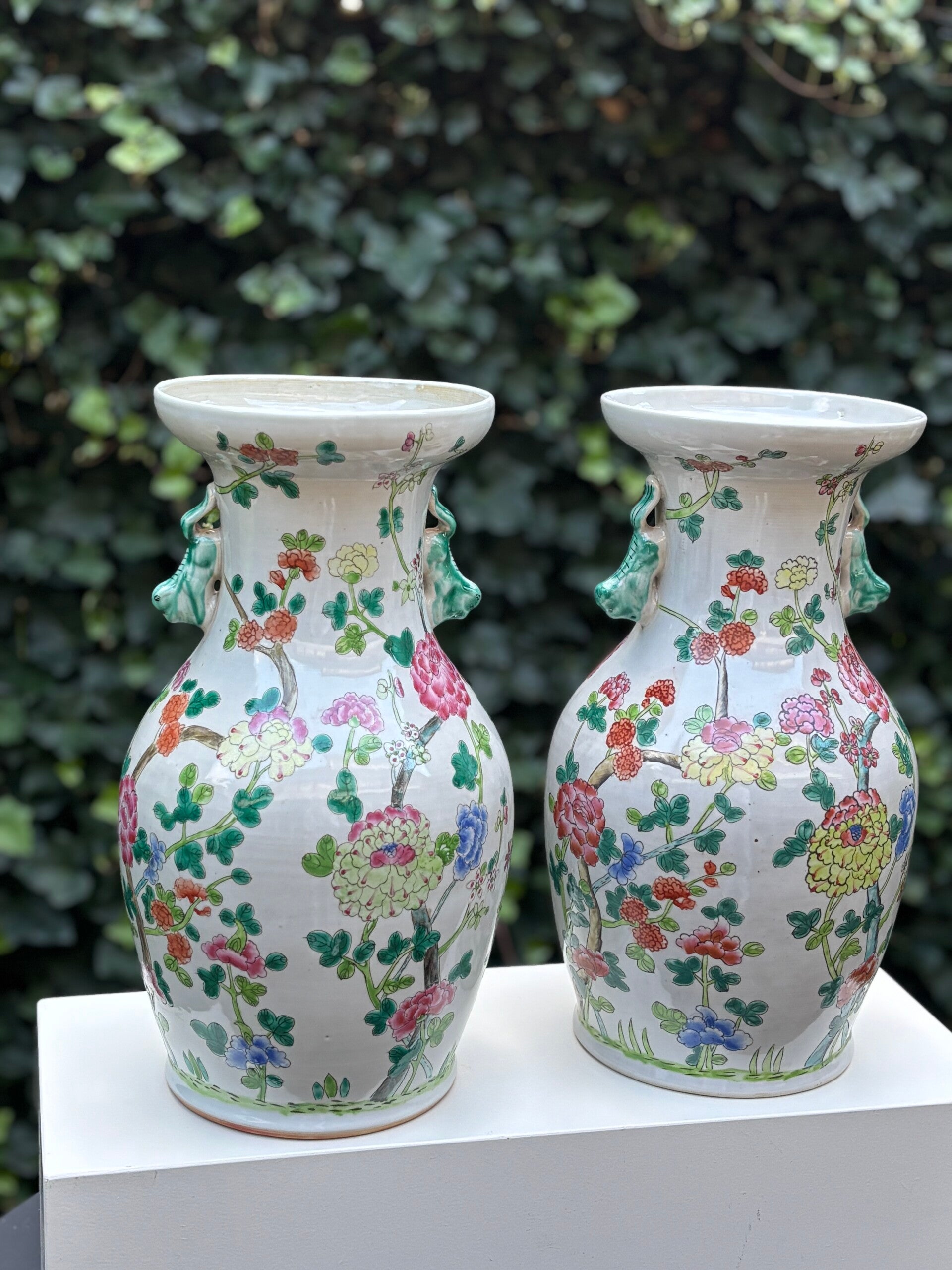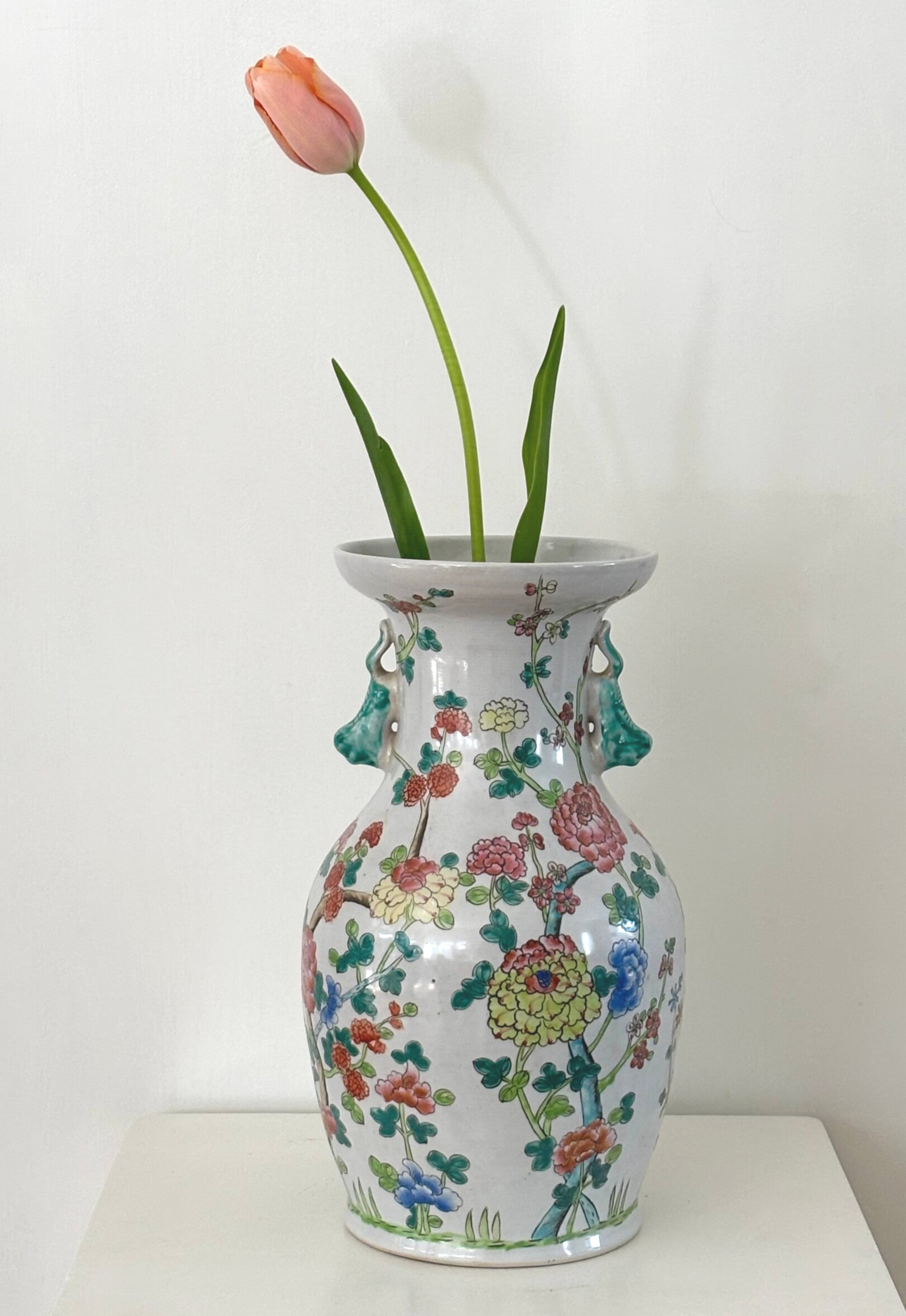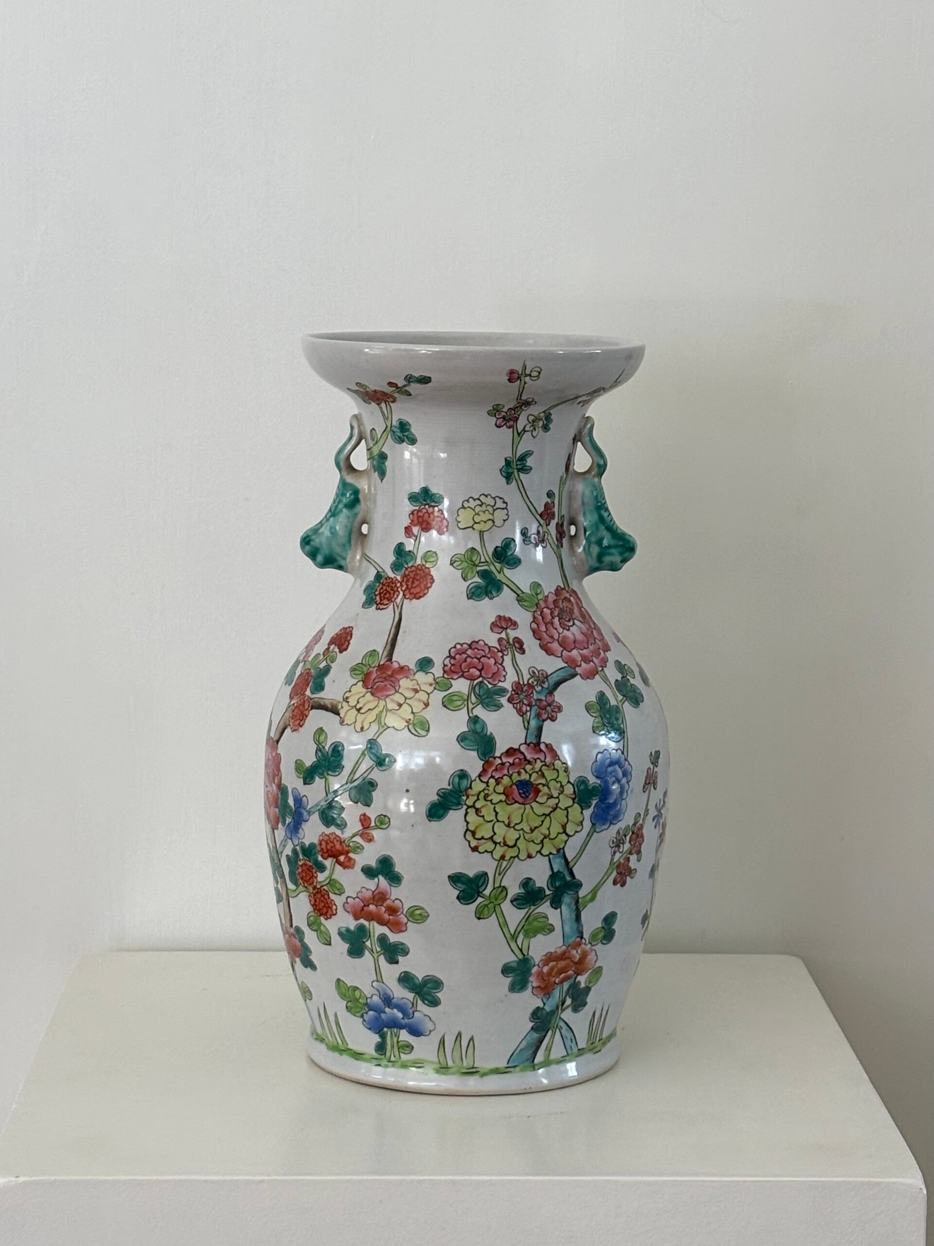 Hand-painted Chinese vase (35.5 x 20 cm). Two available; designs may vary slightly. Unique craftsmanship with a classic Asian motif.