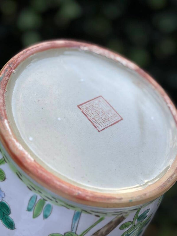 Handbeschilderde Chinese vaas (35,5 x 20 cm). Twee beschikbaar; tekeningen kunnen iets variëren. Uniek vakmanschap met een klassiek Aziatisch motief.
