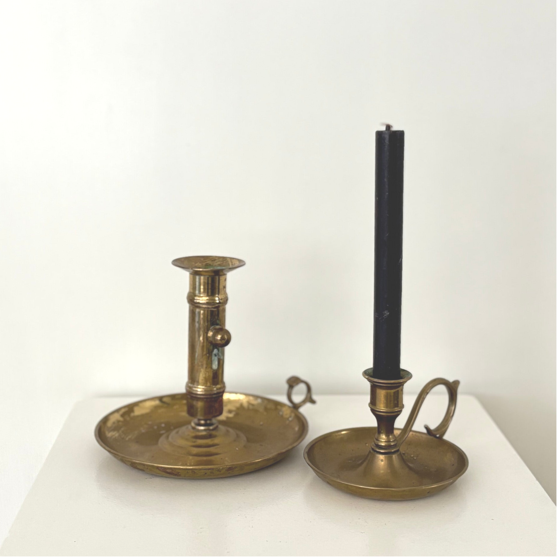 Twee bronzen kandelaren (16 en 9 cm hoog). Elegant en decoratief.
