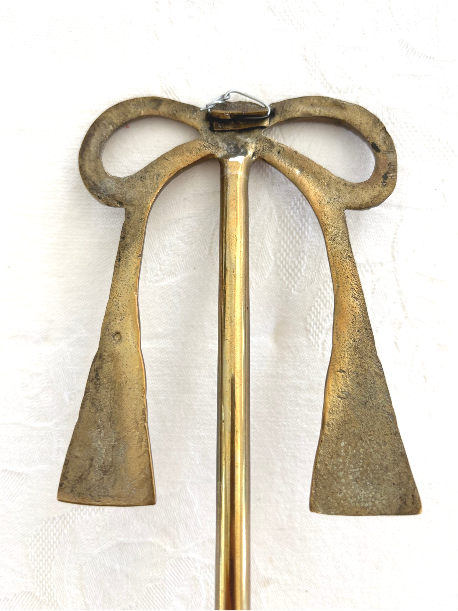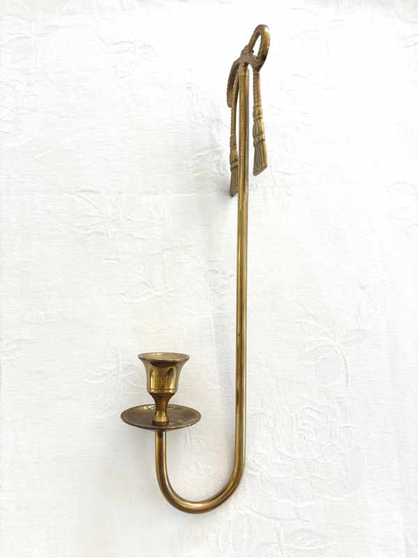 Vintage decorative brass wall candle holder with elegant bow. Length: 34 cm.