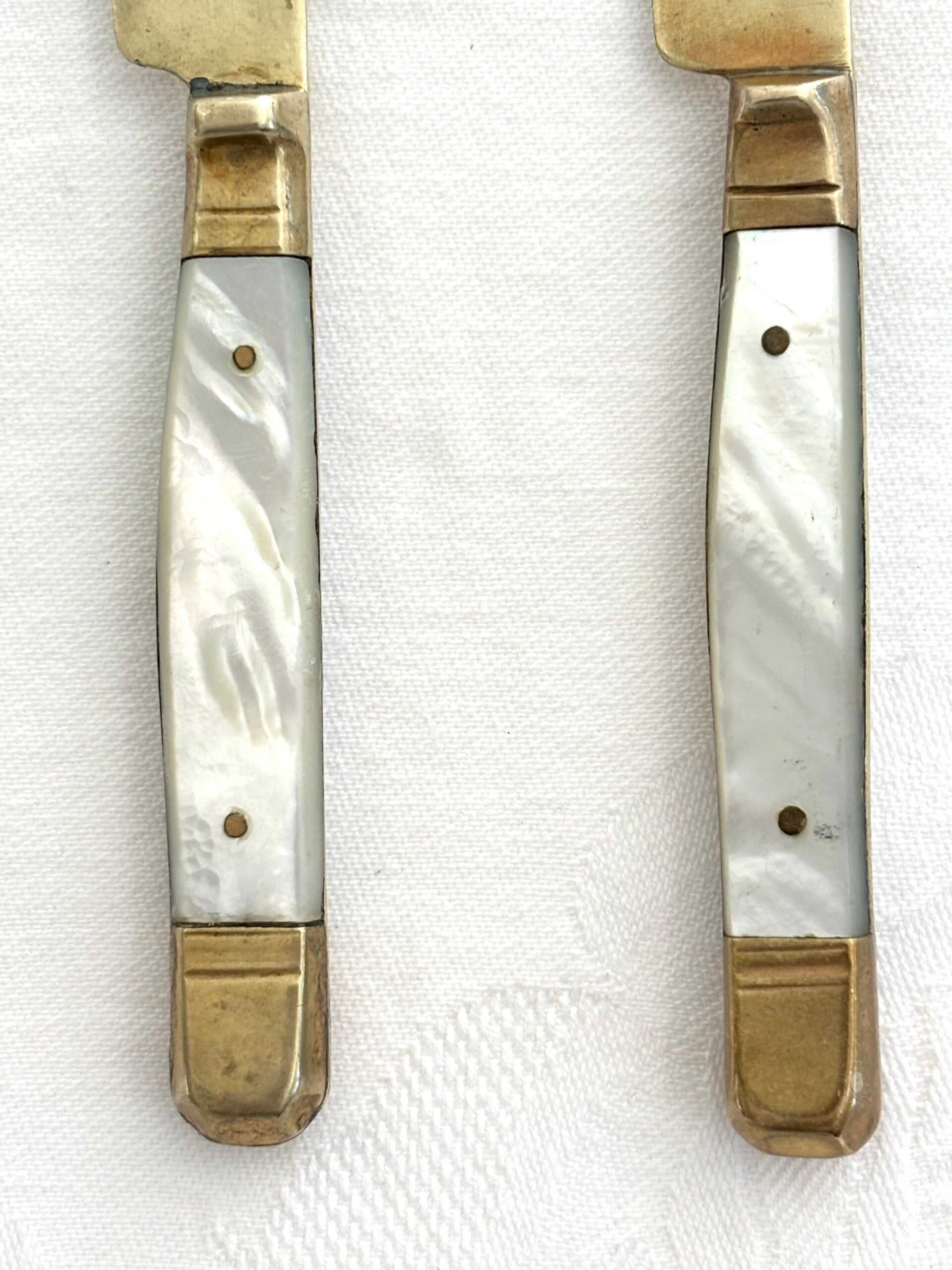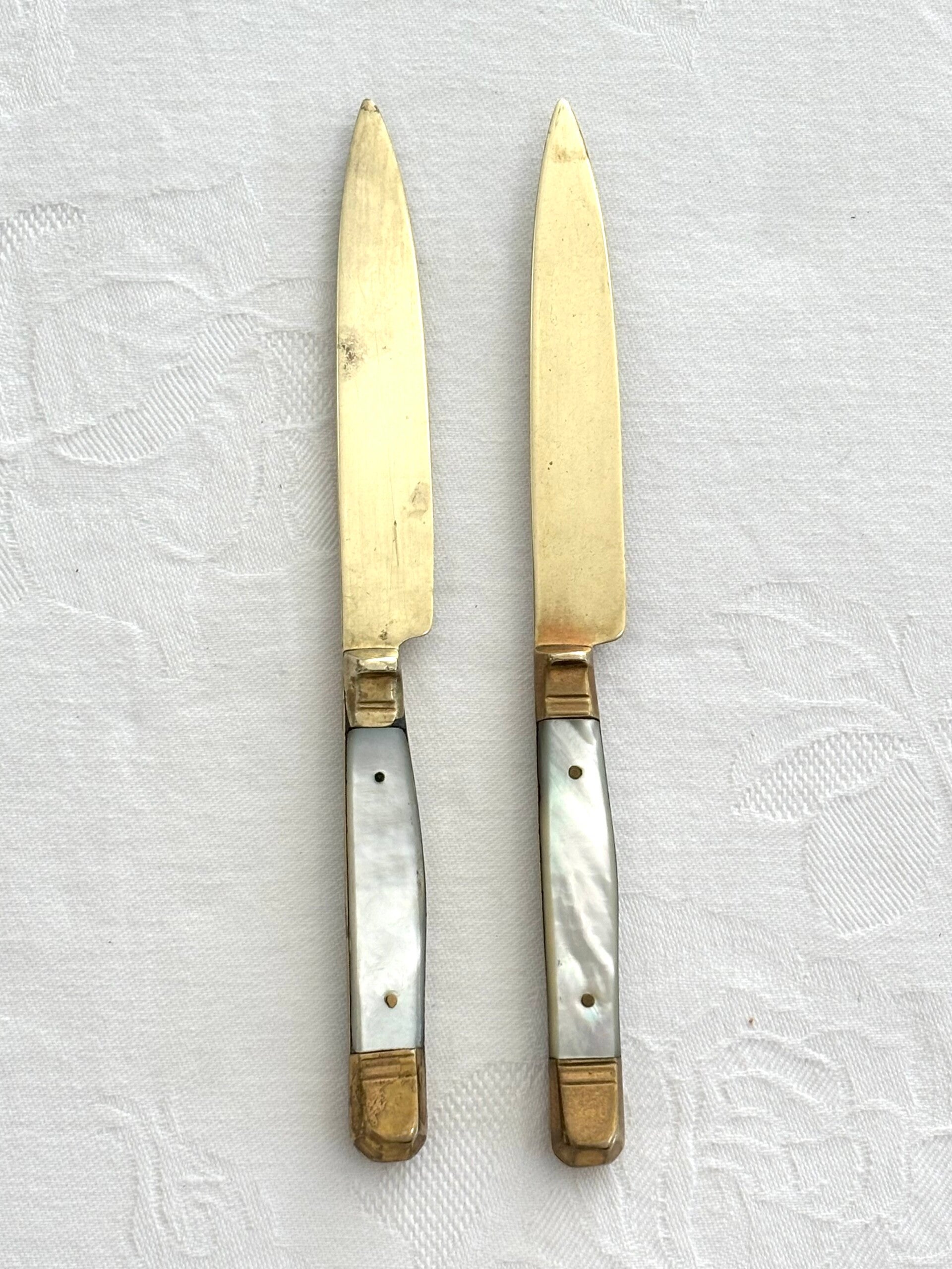 Set van 2 Franse mesjes. Gemaakt van brons en parelmoer. Lengtes: 16 cm.