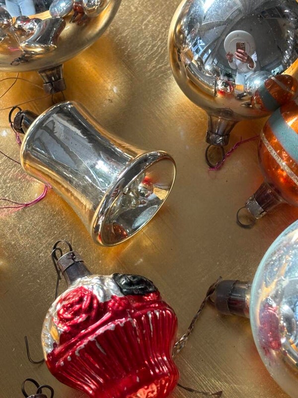 9 Antieke glazen kerstornamenten. Breng nostalgische charme in huis met deze prachtige set originele, handgeblazen kerstdecoratie. Diverse vormen en kleuren, elk ornament uniek! Perfect voor liefhebbers van vintage kerst of als bijzondere eyecatchers in je boom.