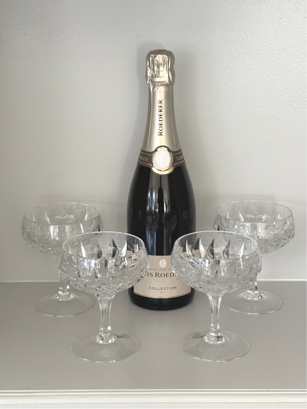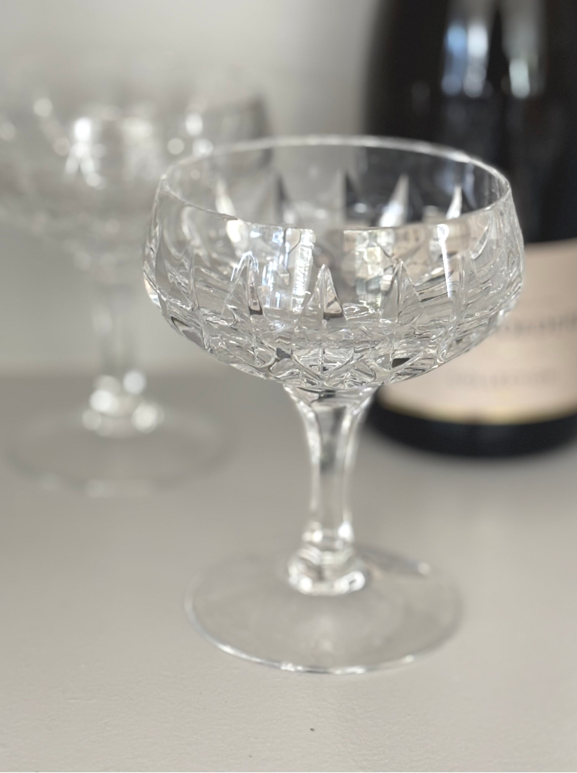 Beautiful set of 4 crystal ‘Helena’ Champagne coupes by Nachtmann. Timeless elegance for festive occasions.