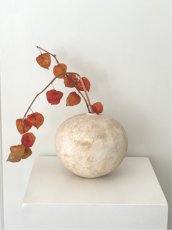 Siervaas met smalle opening, ideaal voor een enkele bloem of als stijlvol object op zichzelf. B: 26 cm. H: 20 cm. Merk: Urban Nature Culture Amsterdam.