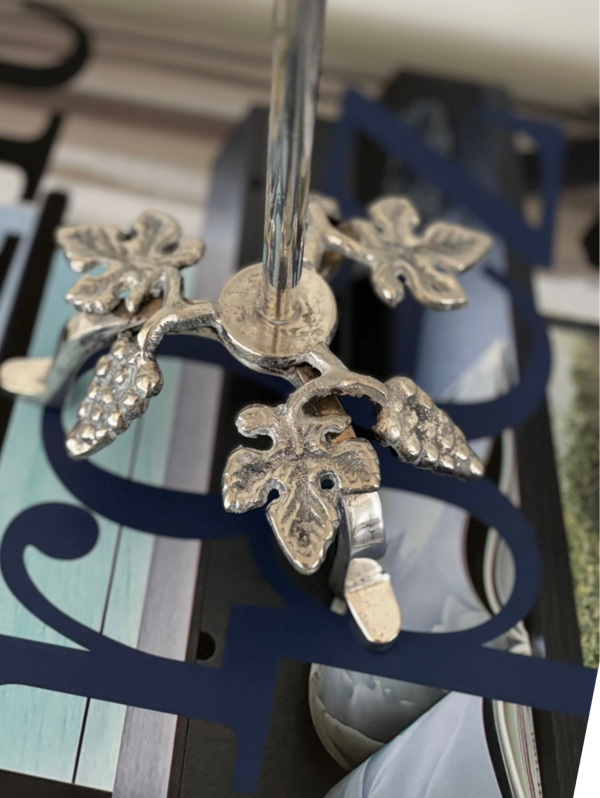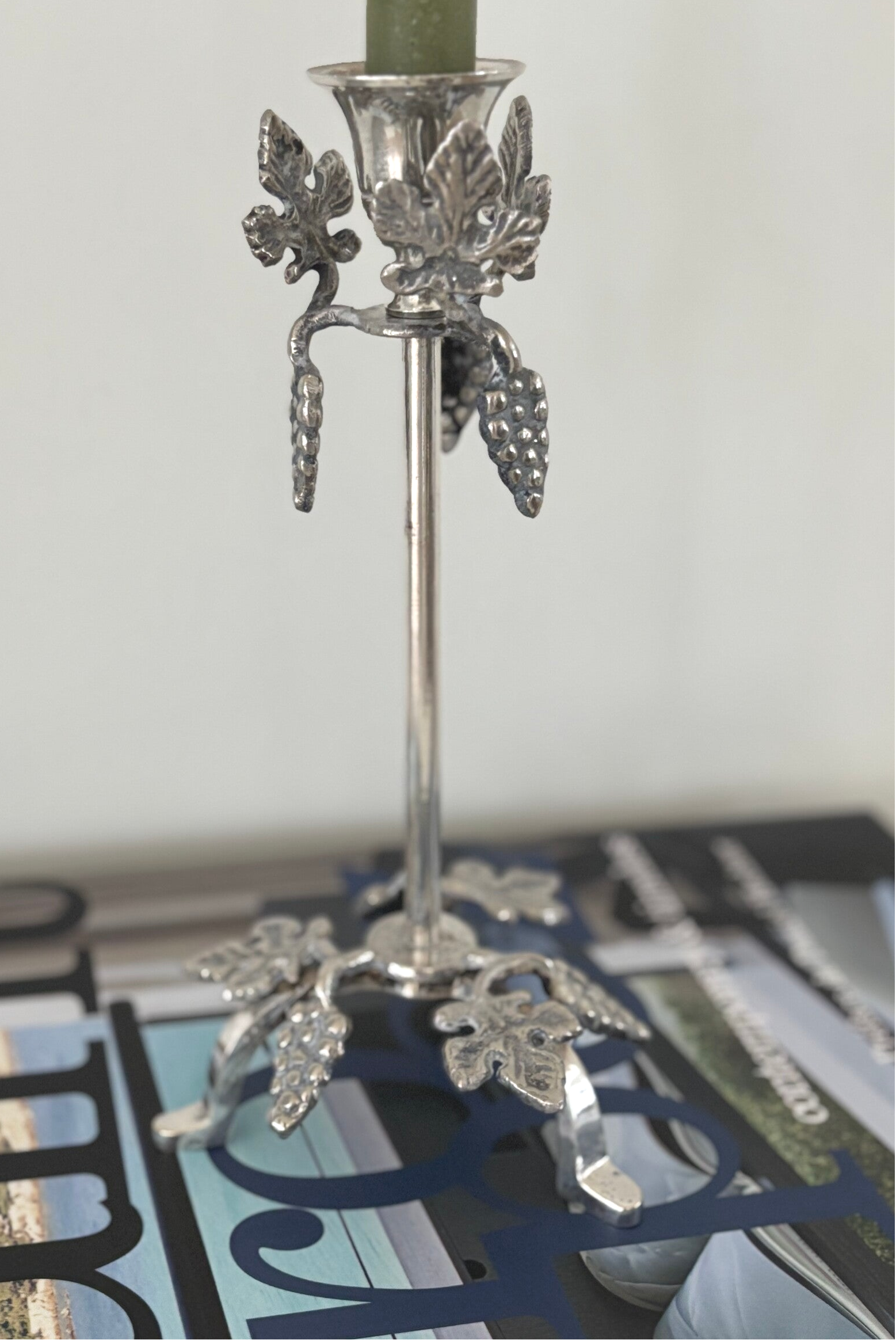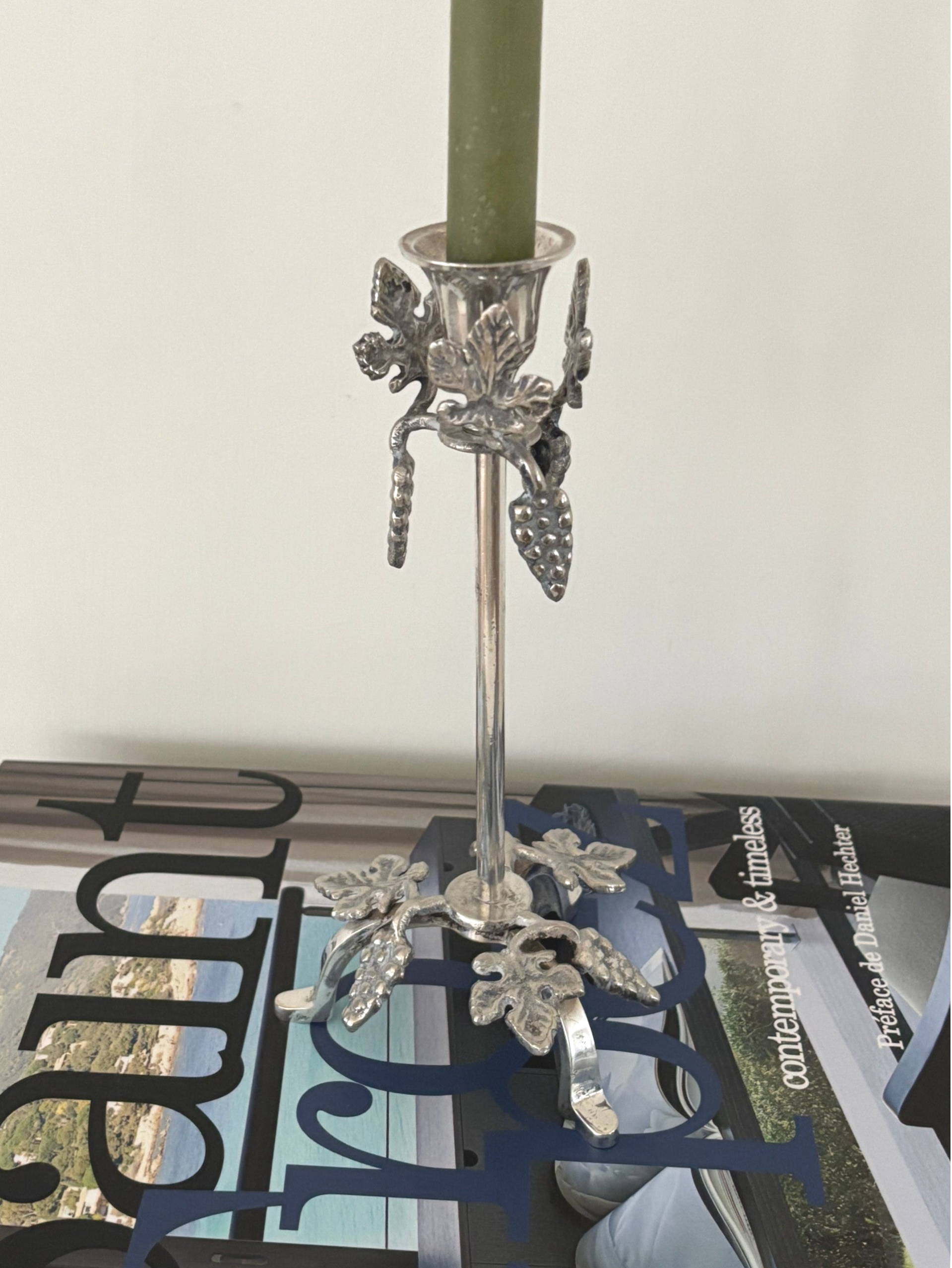 Silver-plated candlestick with refined grapevine motif. A timeless and elegant piece. Height: 23 cm.