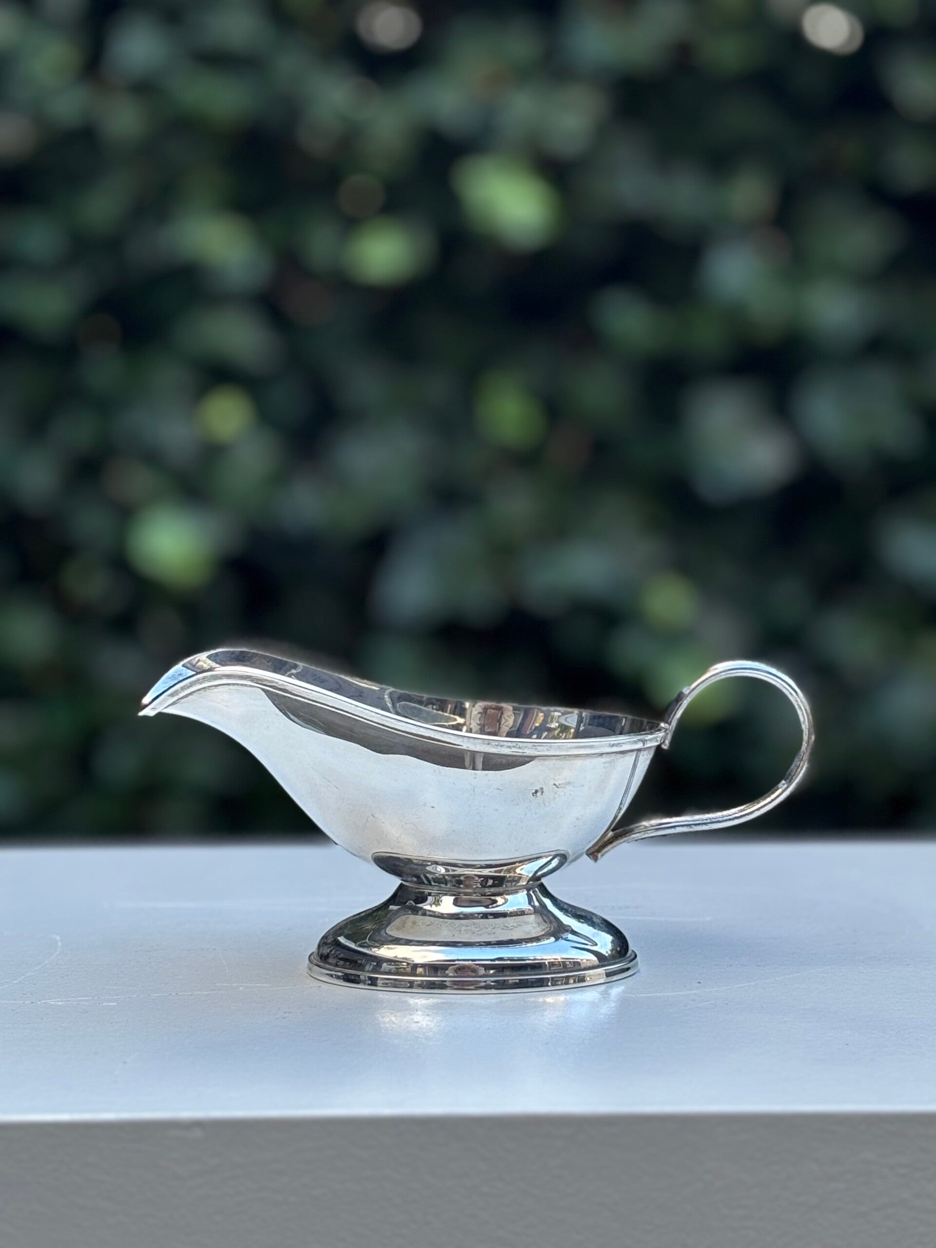 Silver-plated vintage sauce boat with a classic design. A refined addition to any elegant table setting.