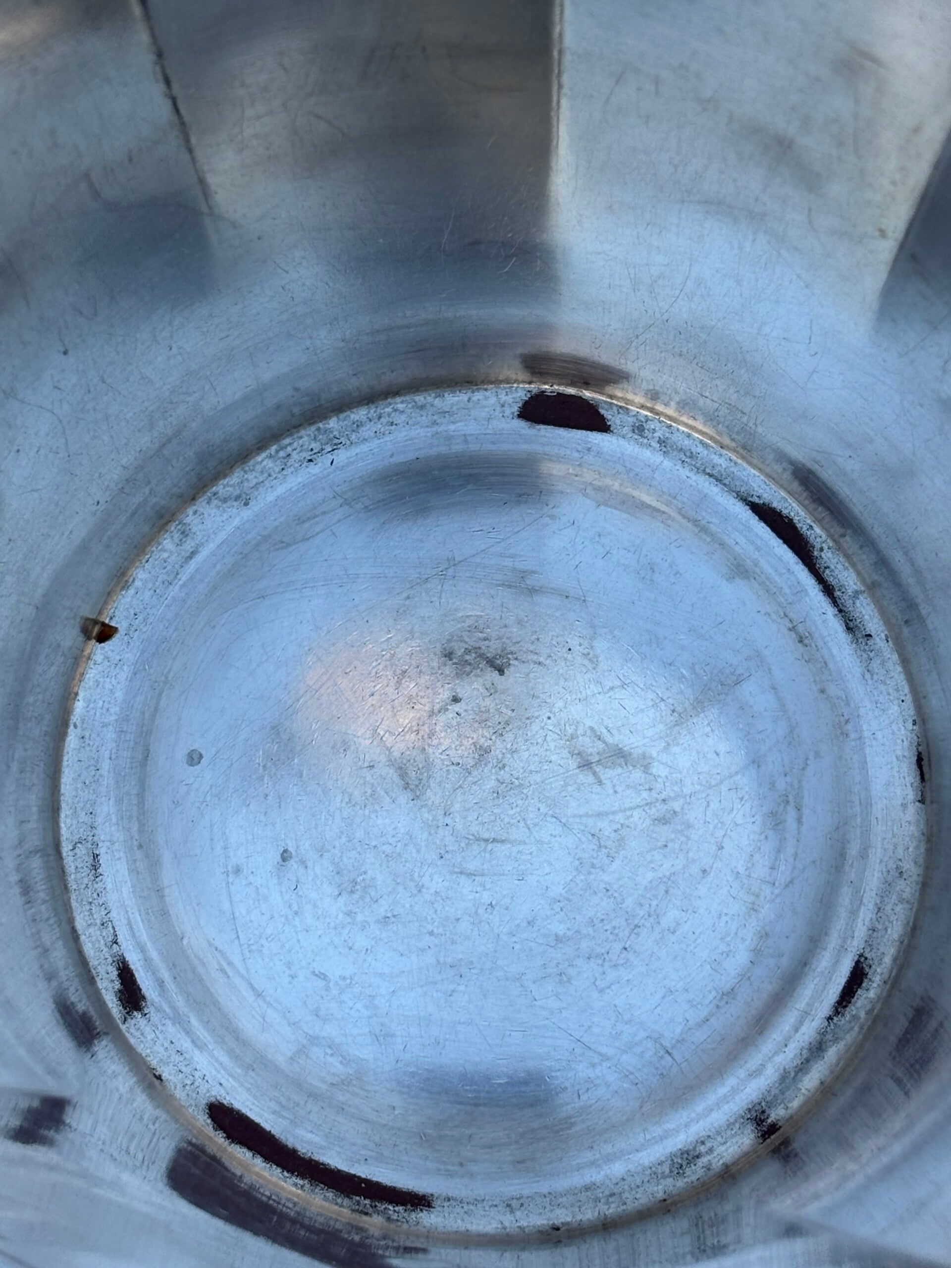 Antieke Art Deco verzilverde ijskoeler van Seglier Frères France. In mooie gebruikte staat, passend bij de leeftijd. Een elegant detail voor op de barcart. H: 13,5 cm, D: 12,5 cm.