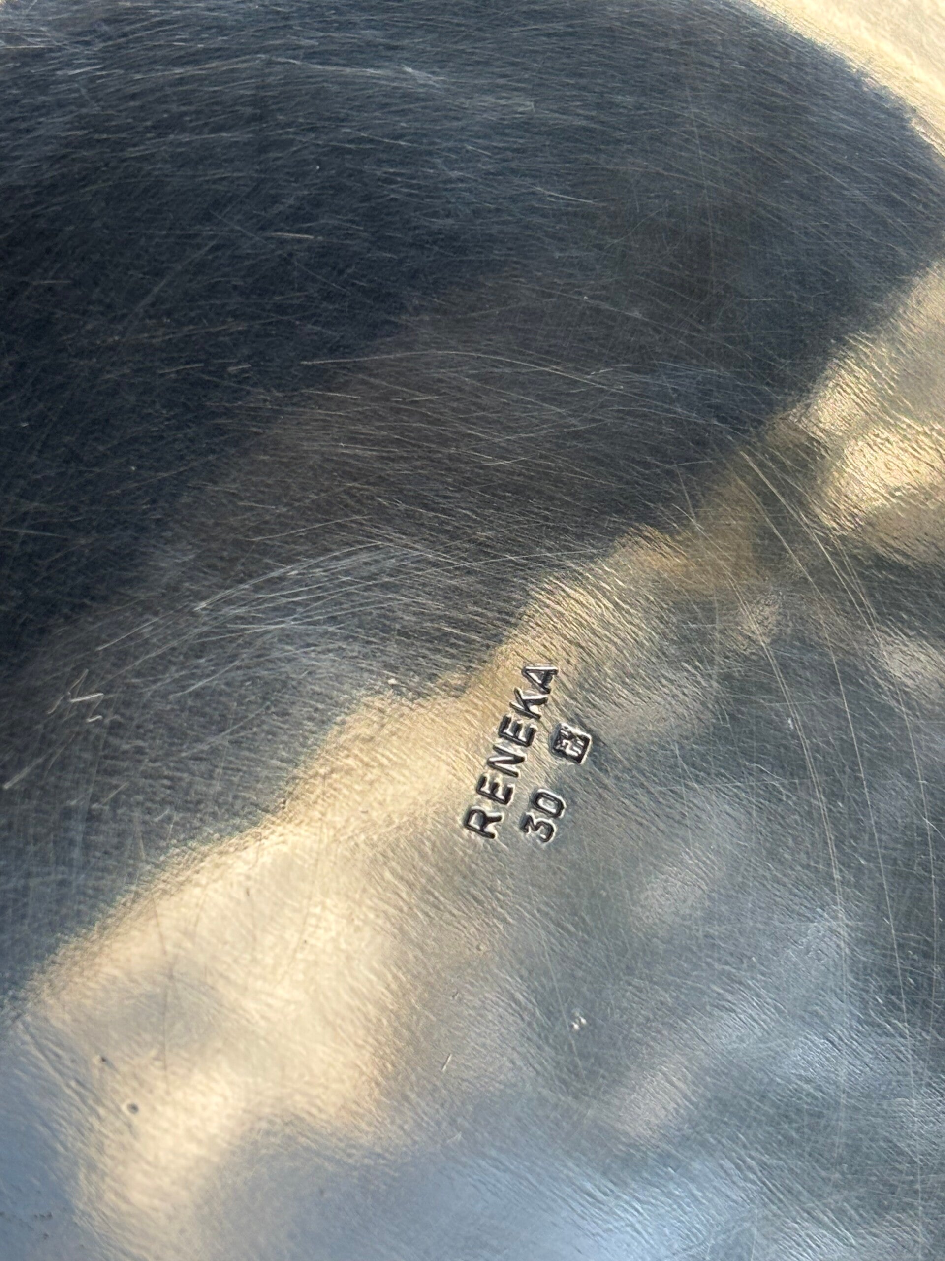 Verzilverde Champagnekoeler met verfijnde details van Reneka Strasbourg. Een stijlvol stuk, gemerkt aan de onderzijde.