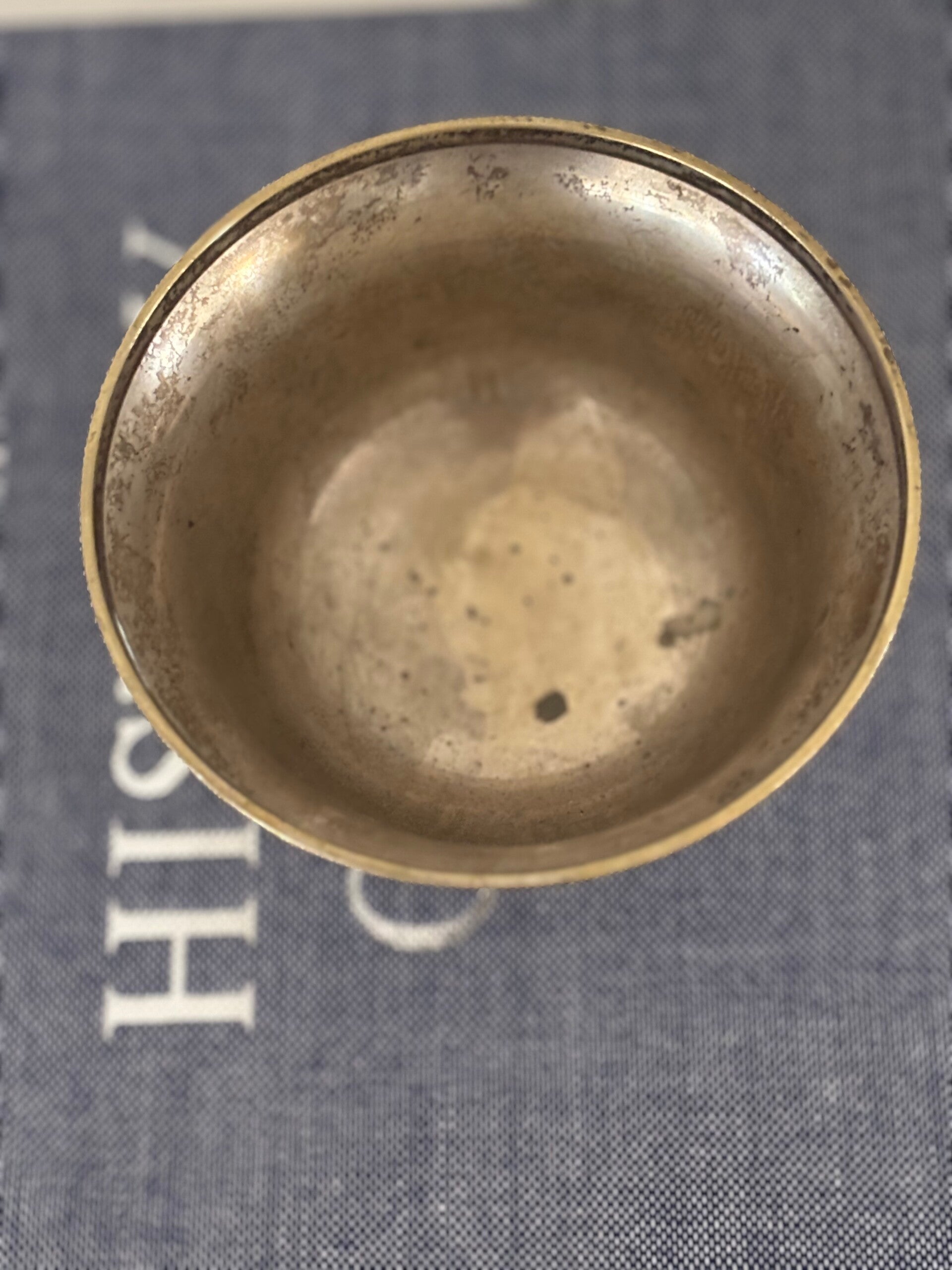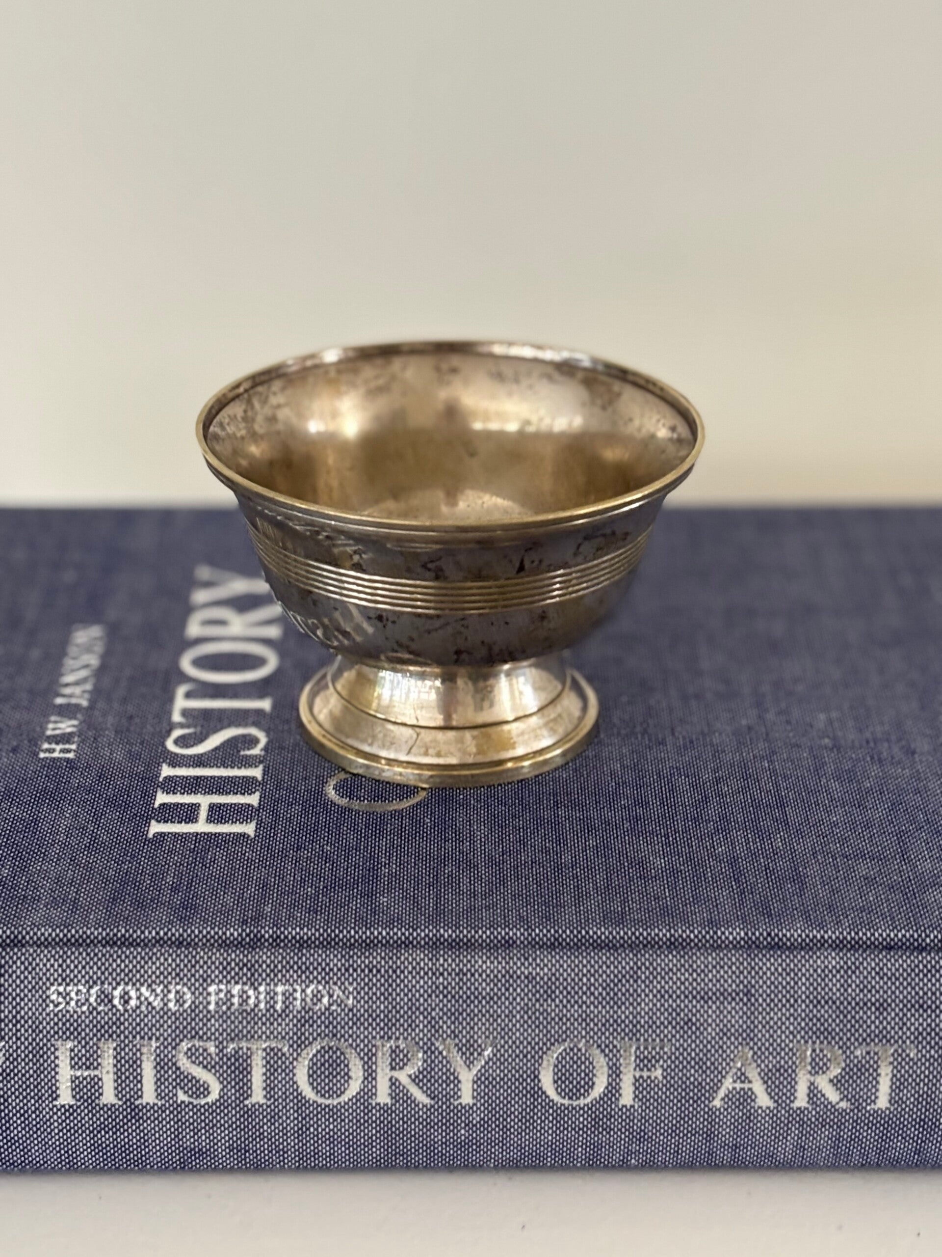 Verfijnd schaaltje op voet met tijdloze uitstraling. Afmetingen: 7,5 x 11,2 cm.