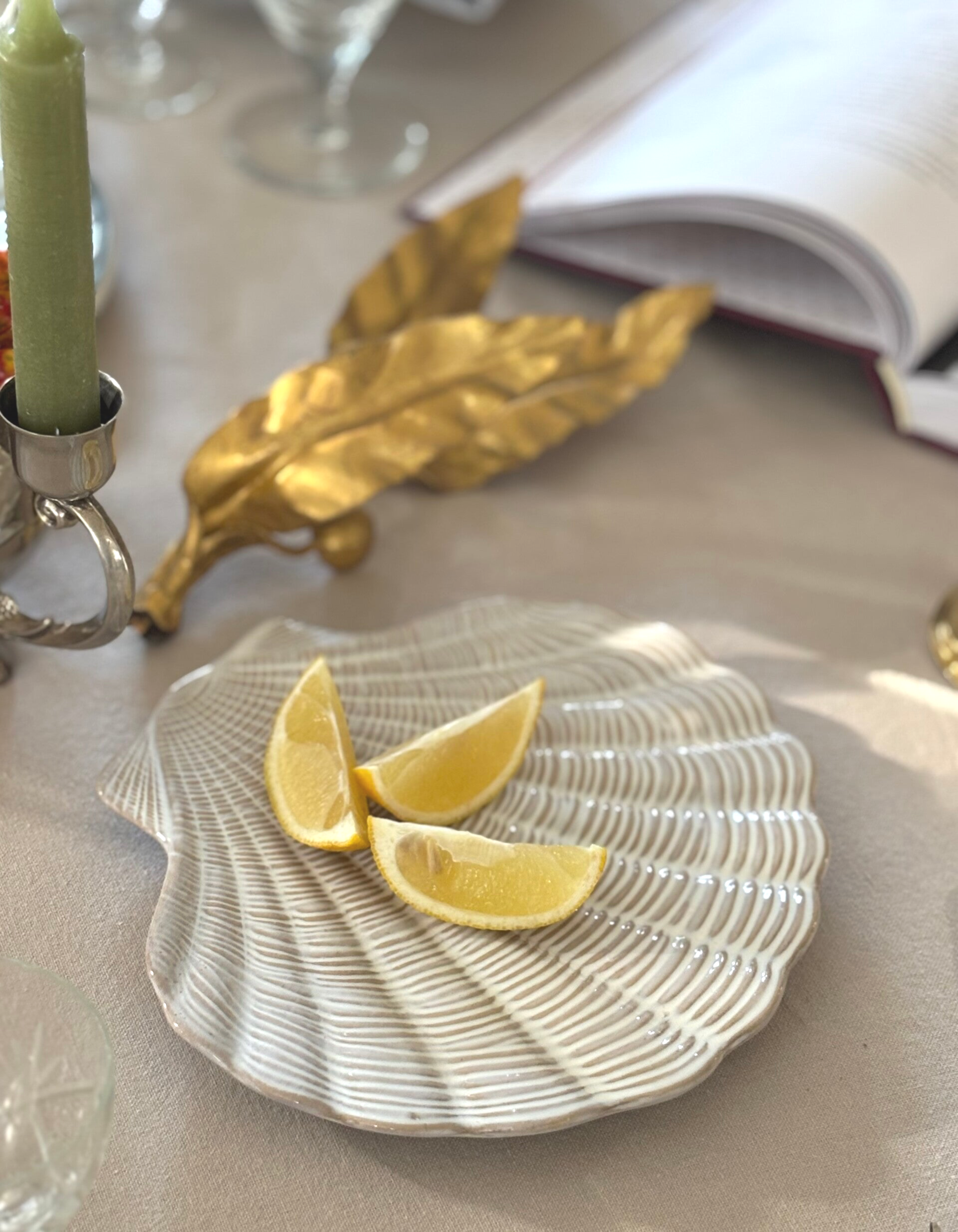 Elegant and timeless, this shell-shaped ceramic dish adds a touch of coastal charm to any table. Perfect for serving or decor.