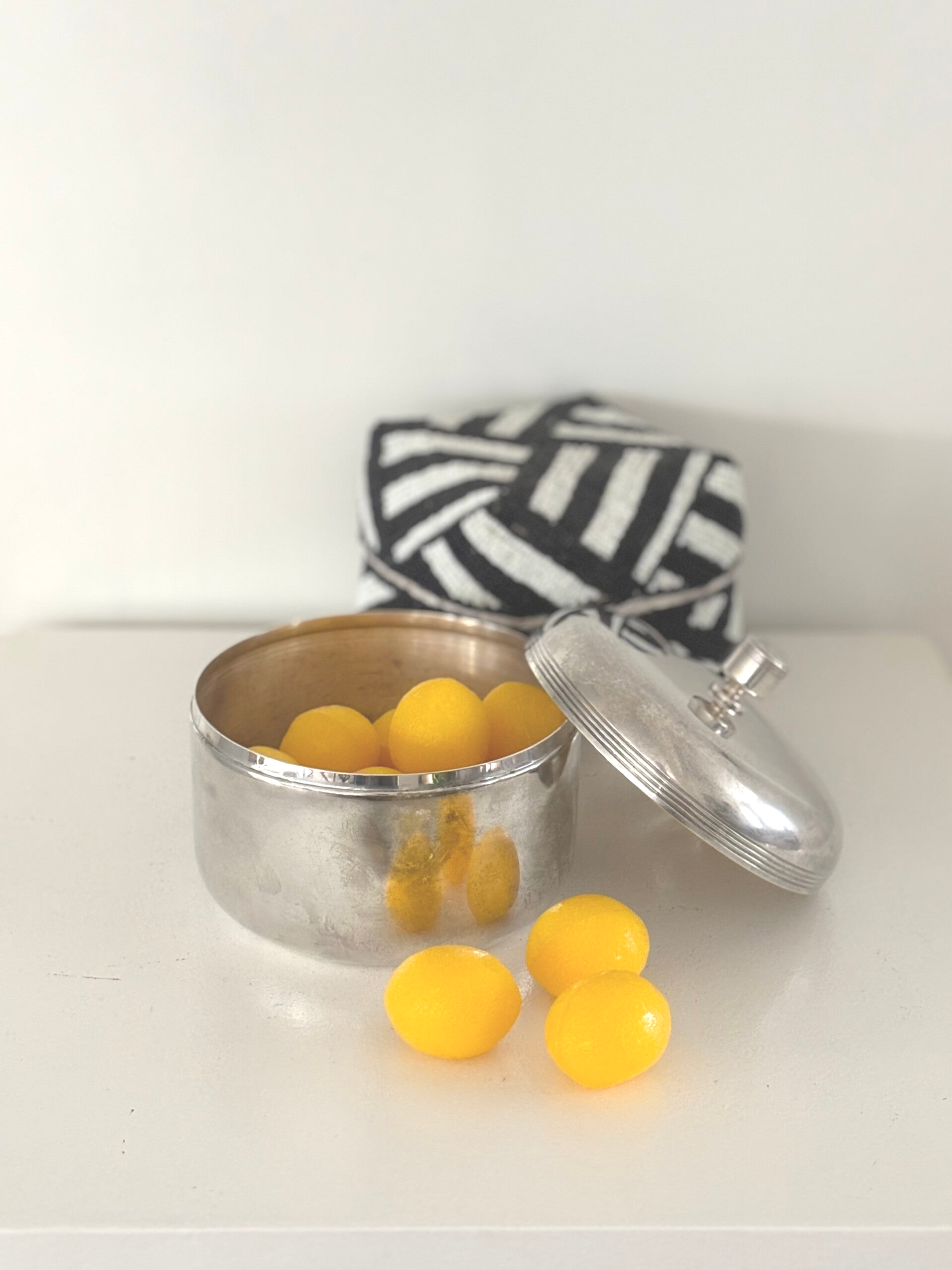 Silver-plated lidded pot/sugar bowl by St. Hilaire Paris, marked on the underside. Elegant and versatile in use. Dimensions: 12 x 12.5 cm.