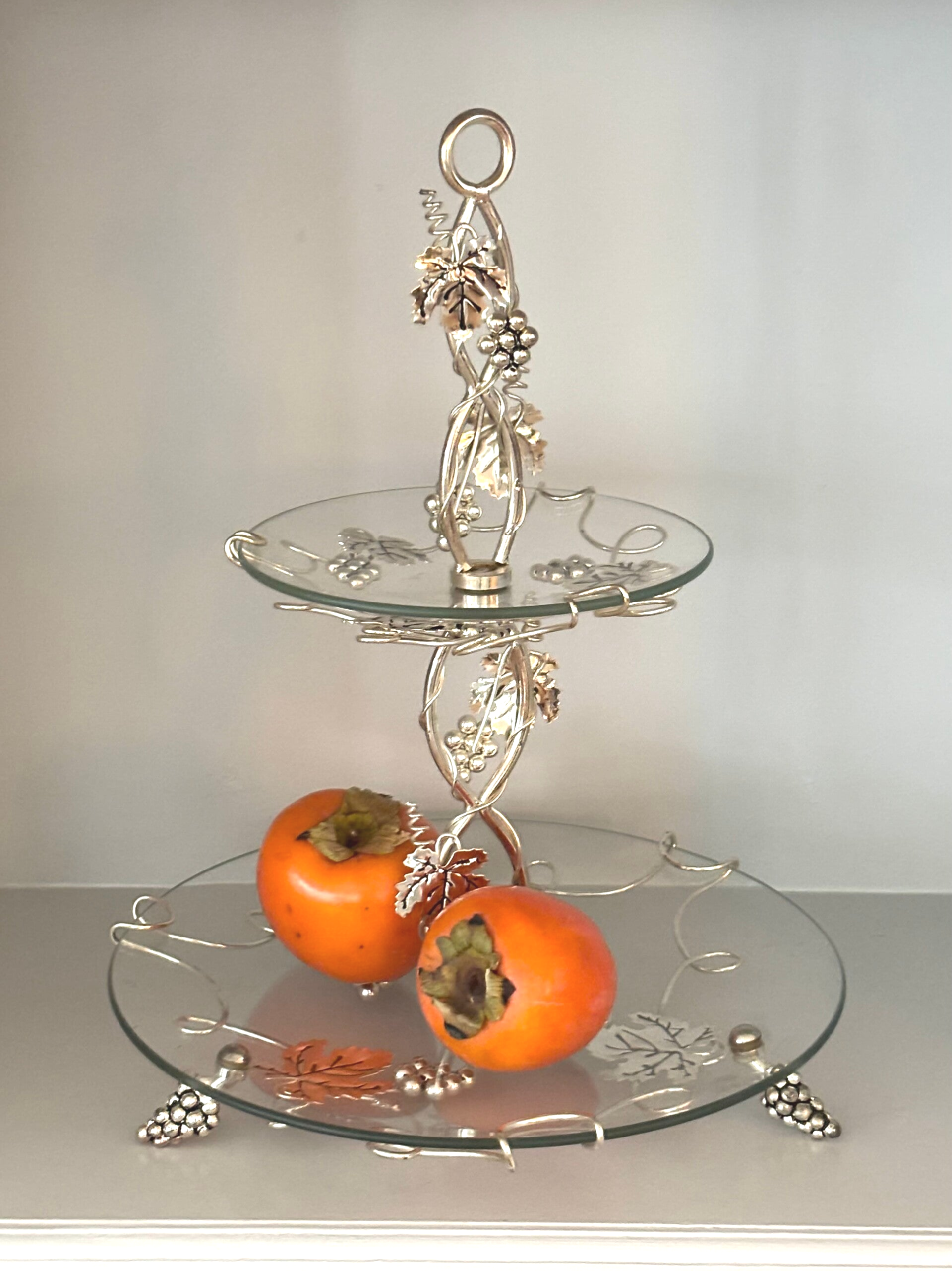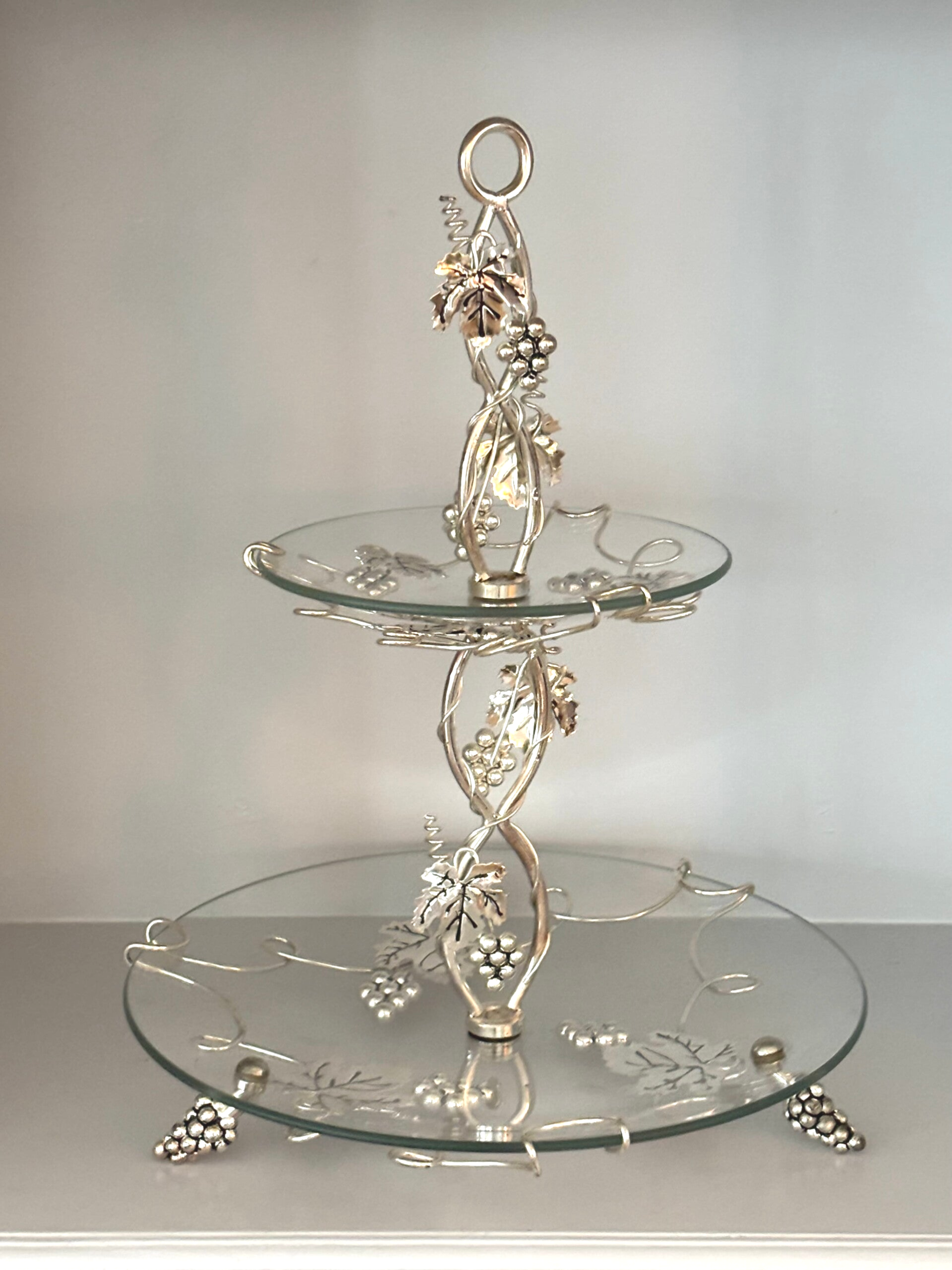Prachtige etagère met sierlijke druivenranken - Elegant tiered stand adorned with graceful grapevine details