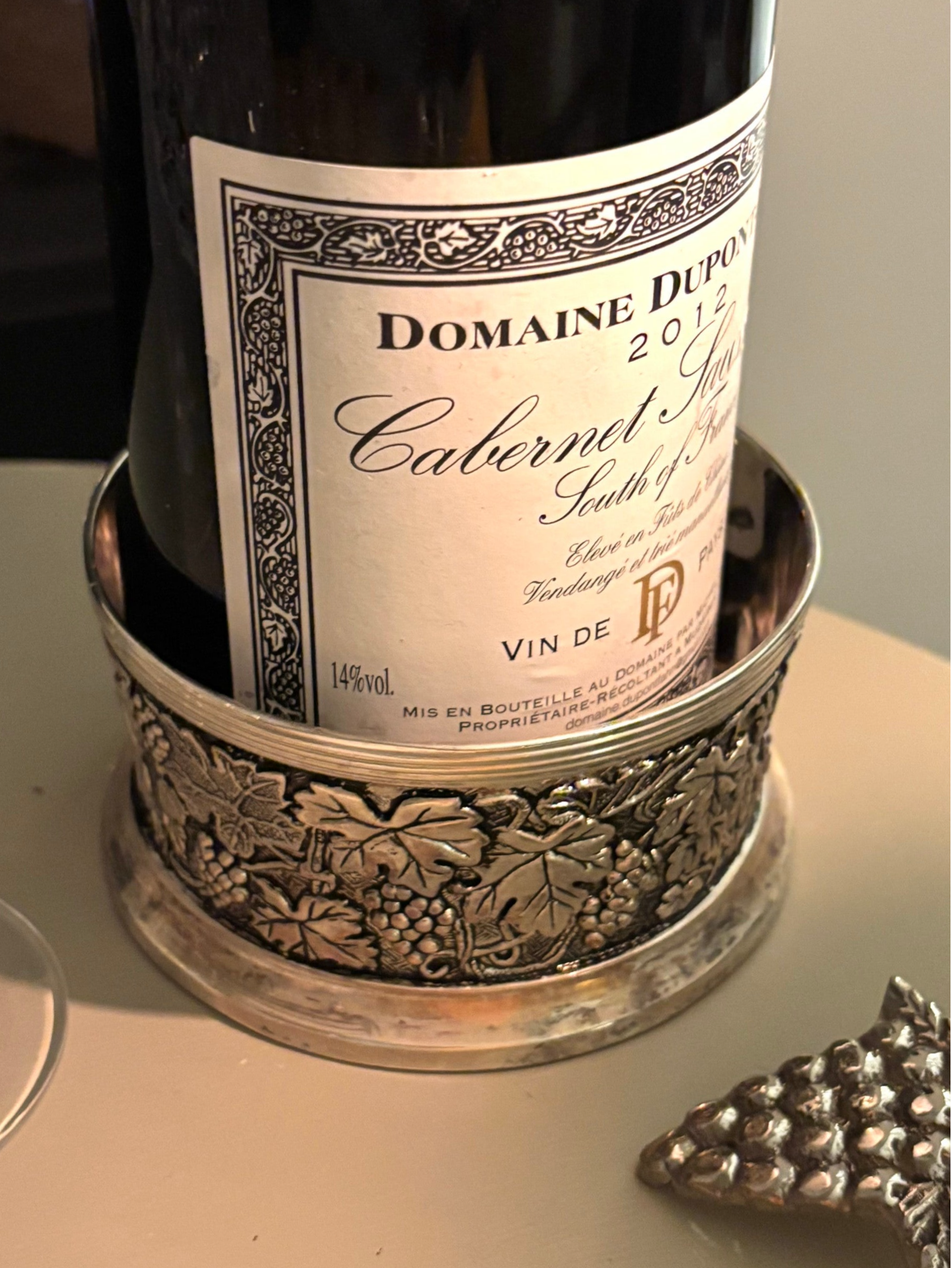 Stijlvolle wijnfleshouder. Een elegante manier om wijn te presenteren.