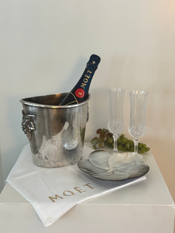 Een prachtig schaaltje, geslepen uit een oude Tahitiaanse parelmoerschelp. De natuurlijke glans en organische vorm maken het tot een verfijnd decorstuk met tijdloze charme. Afmetingen: 18,5 x 18,5 cm.