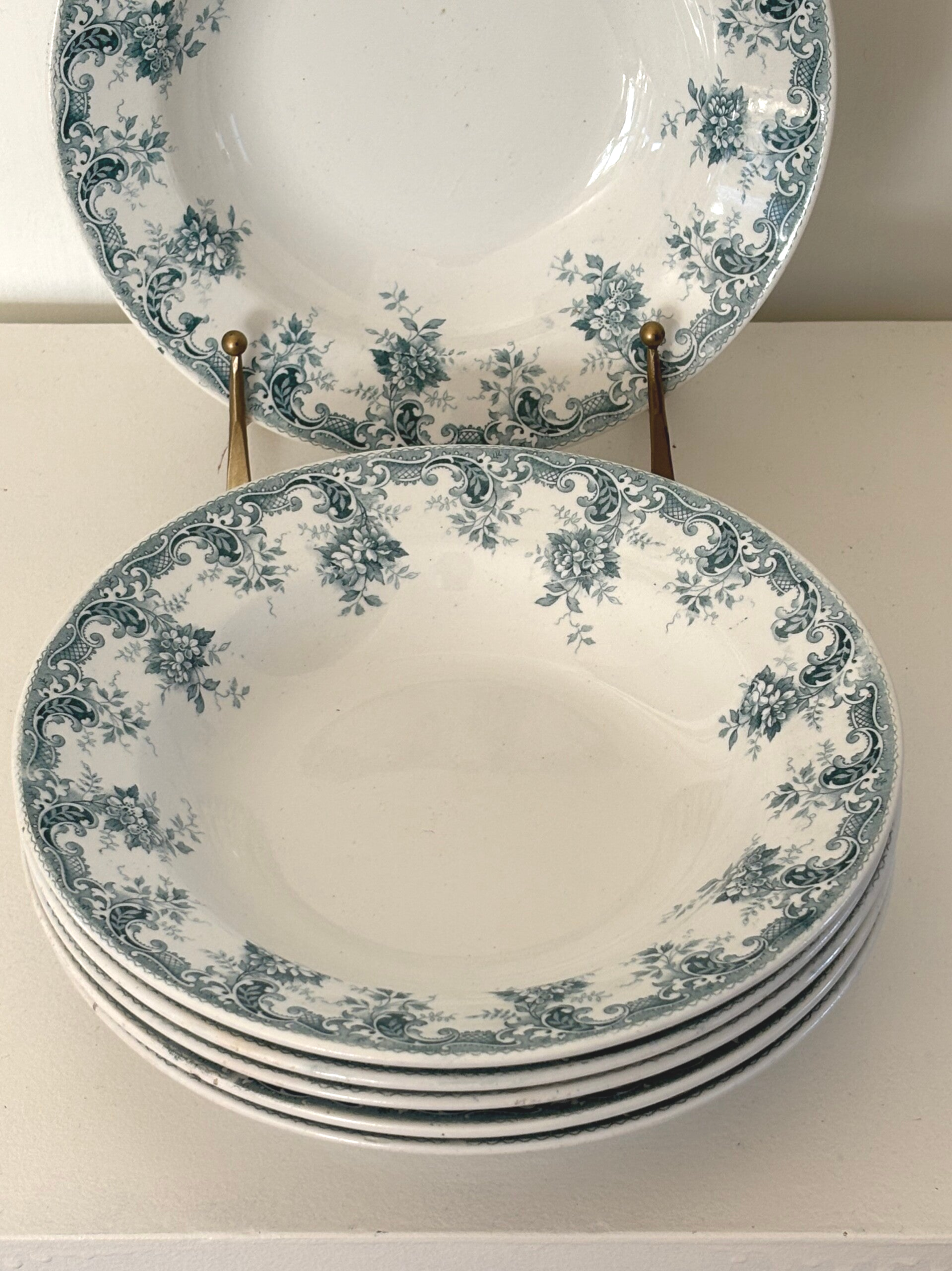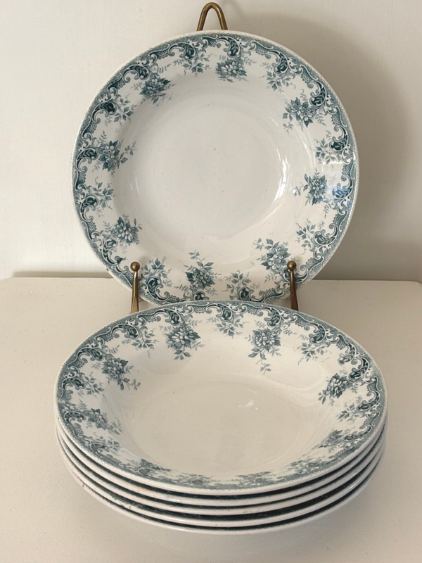 Set van zes diepe borden uit de serie Andrée, Societé Céramique Maestricht. Een tijdloze klassieker in elegante petrolkleur, perfect voor een stijlvol gedekte tafel. Diameter: 23,3 cm.