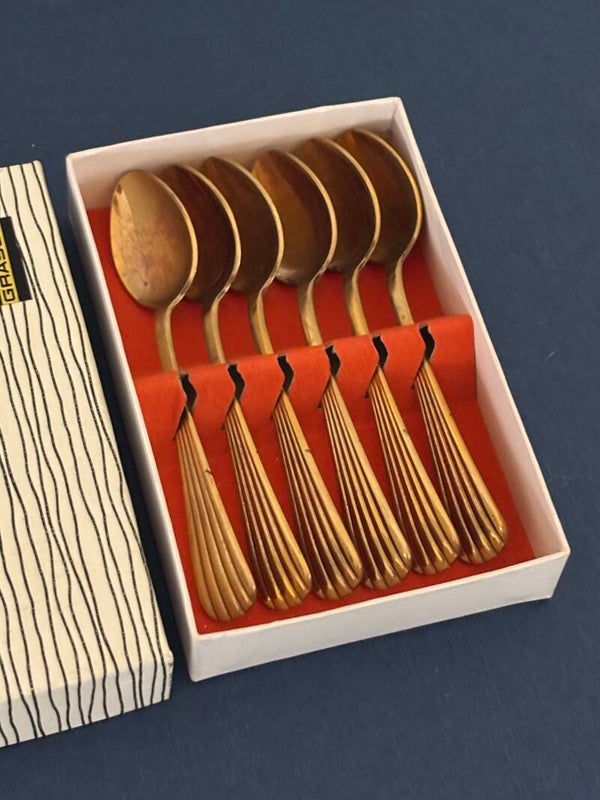 6 Vergulde mokka lepeltjes van Grasoli - 6 Gilded espresso spoons by Grasoli