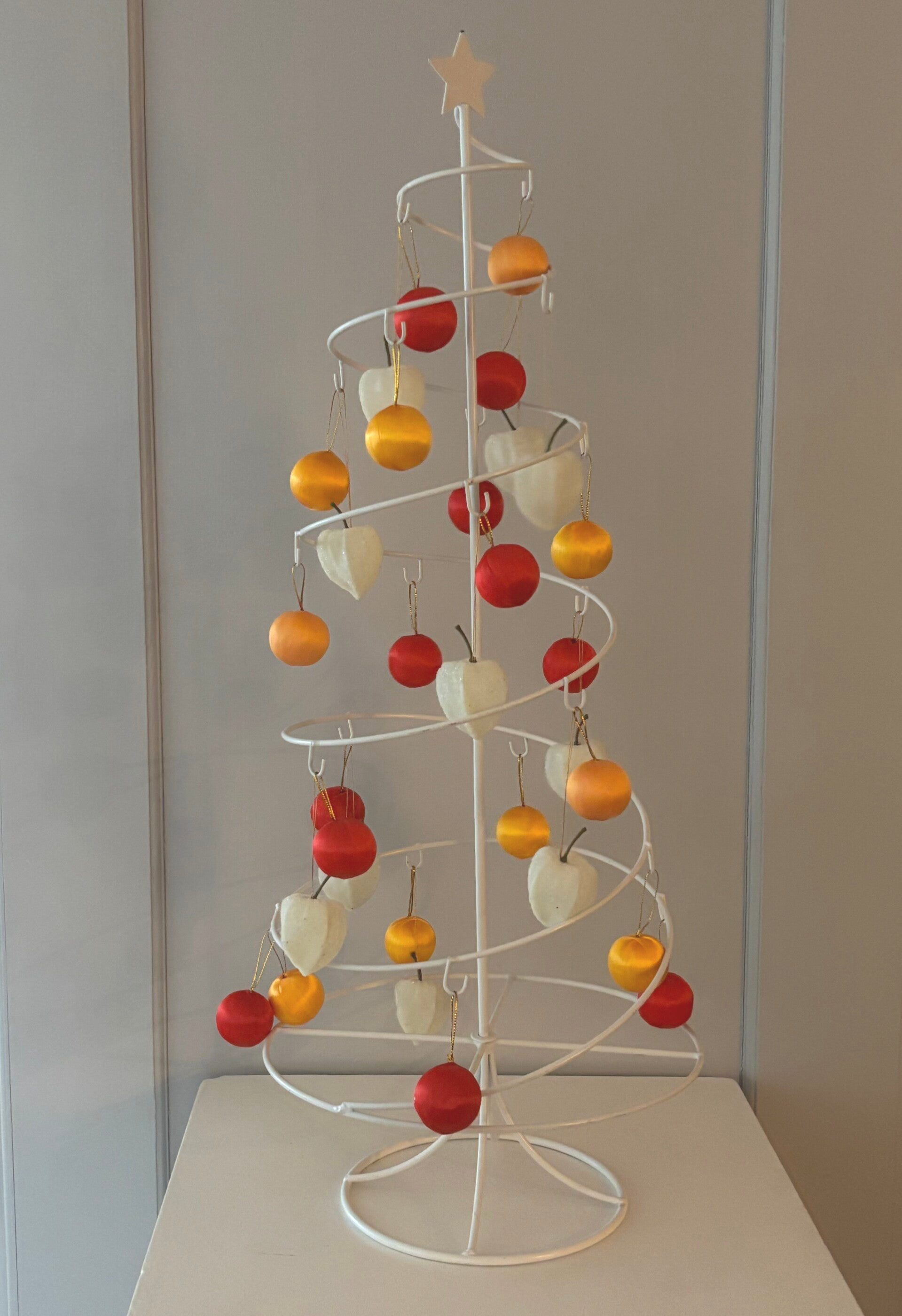 Hoge metalen kerstboom gevuld kleine ornamenten - Tall metal Christmas tree filled with small ornaments