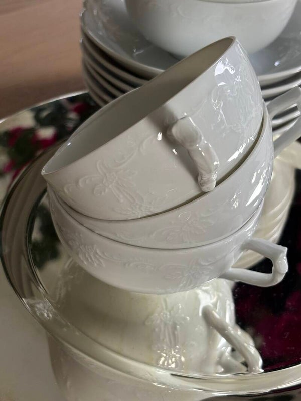 Stijlvolle set van zes kop en schotels van Royal Schwabap Porcelaine, een klassiek accent voor bij de koffie of thee.