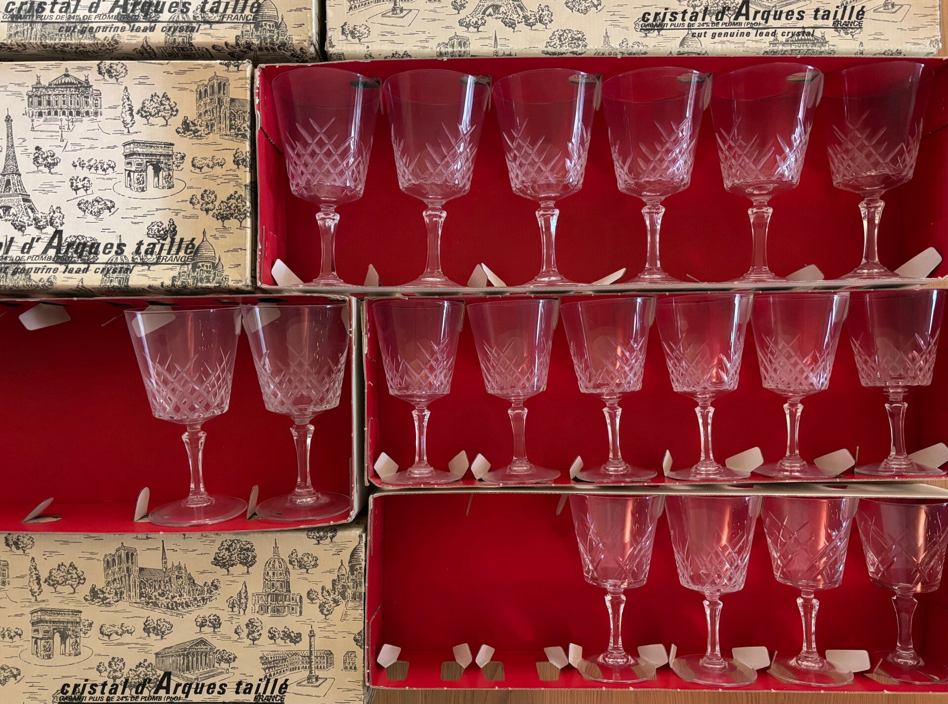 18 Kristallen water- en wijnglazen Chantilly Taille Beaugency van Cristal D’Arques - 18 Crystal water & wine glasses Chantilly Taille Beaugency by Cristal D’Arques